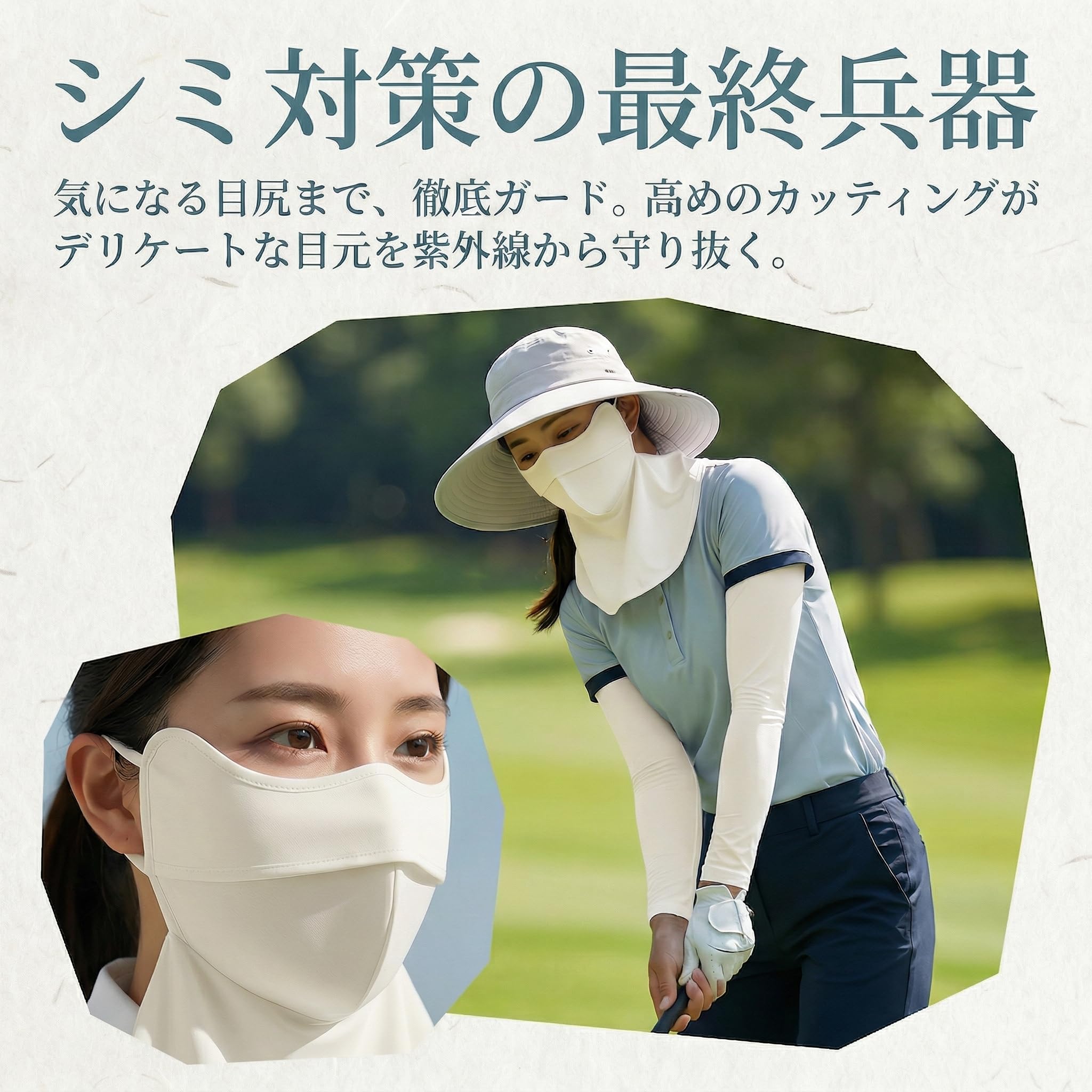 説明本製品は顔だけでなく首・肩までしっかりカバーできるフルカバータイプの UV カットフェイスカバーです。UPF50 + の高い紫外線カット機能により、紫外線を 99%ブロックし、日焼け・シミ・シワから肌を守ります。ひんやりとした氷丝素材を採用し、夏場でも快適に着用でき、3D 立体構造によって小顔効果と美しい輪郭を演出。耳ひも調整機能、後首マジックテープ、裾隠しホックを搭載し、ズレにくく安定した装着感を実現。隠し呼吸口と目元保護デザインで機能性も抜群です。スポーツ、ドライブ、ガーデニング、サイクリング、散歩、通勤通学など、屋外で活動する幅広い方におすすめです。