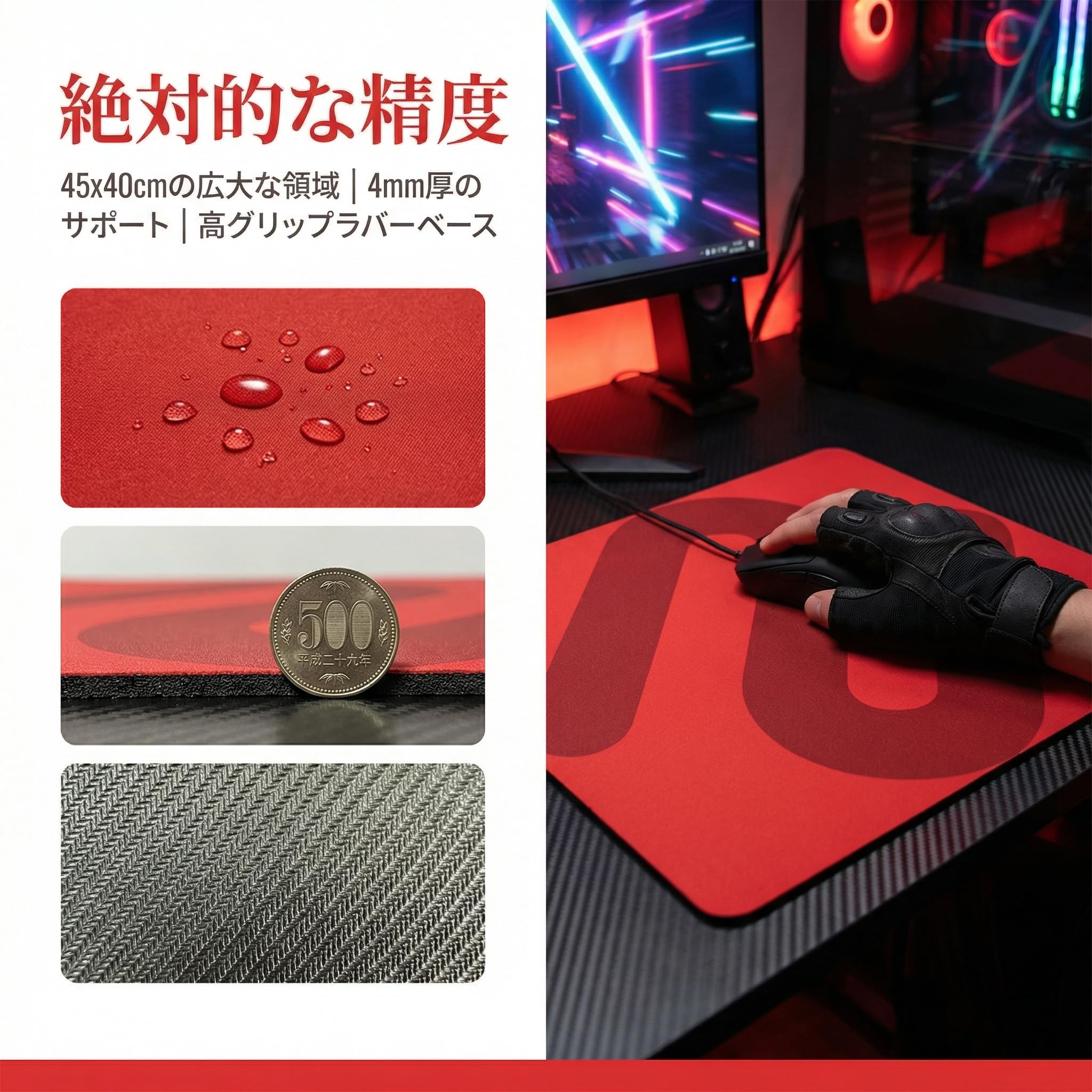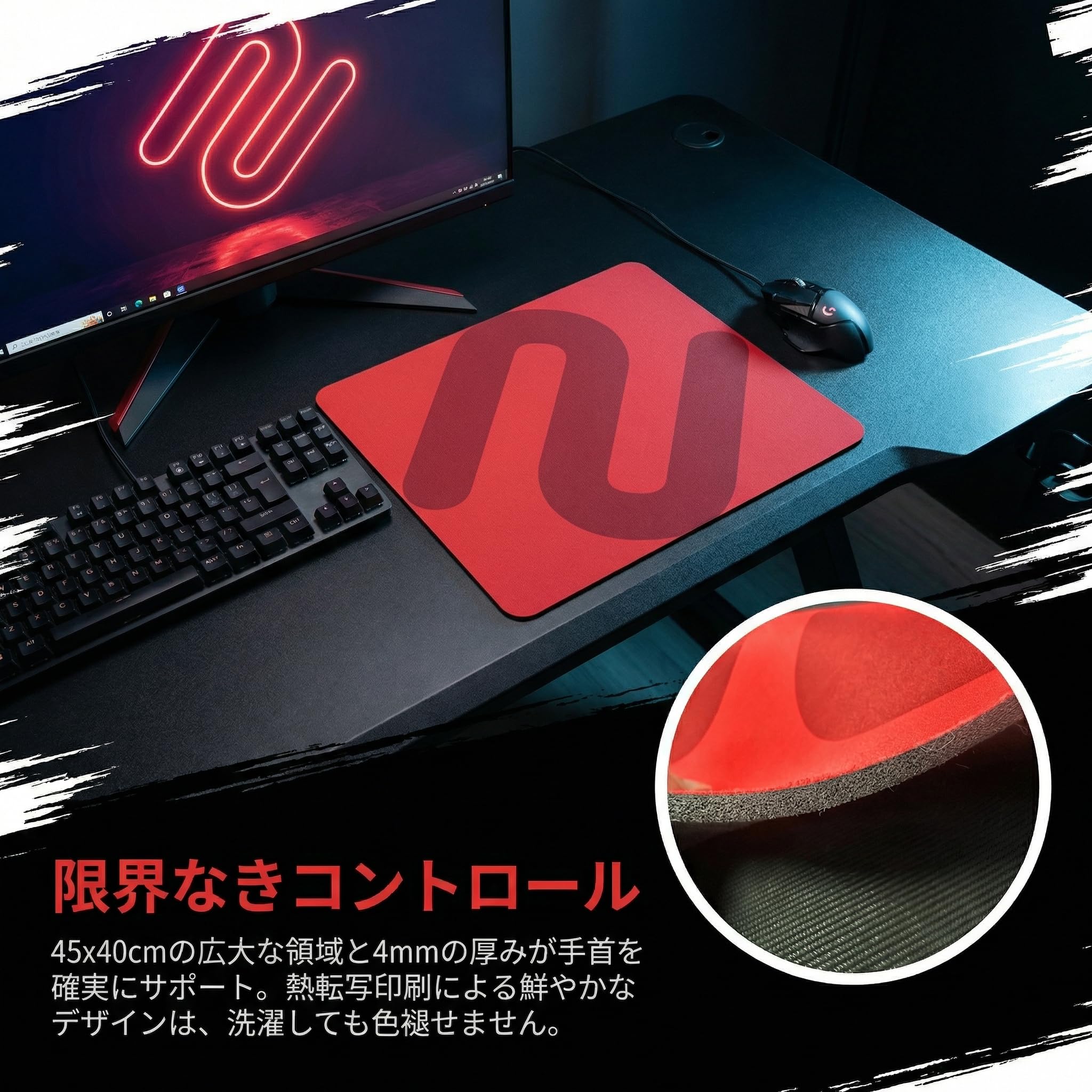 ゲーミングマウスパッド 400*450*4mm キーボードパッド マウスパッド 滑り止めゴム底 快適操作性 耐久性 無臭 (レッド)