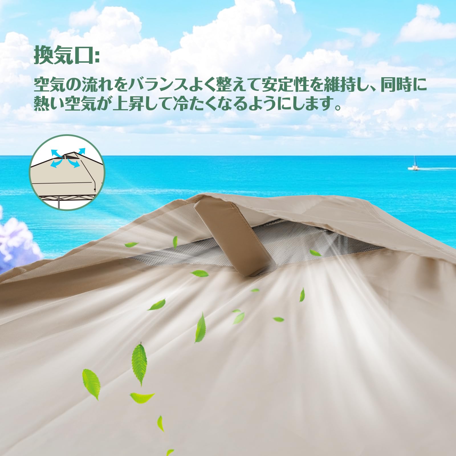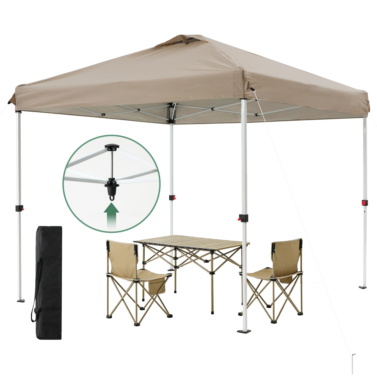 ToopTapu タープテント 【組立と運び簡単!!】【センターロック/キャスターバッグ】2.5×2.5m/3×3m サイドシート2枚付き 風抜けベンチレーション 3段階調節 スチールフレーム 8人用大型 組立簡単 UVカット 耐水 付属品付き ワンタッチ設営 (ベージュ, 3m)