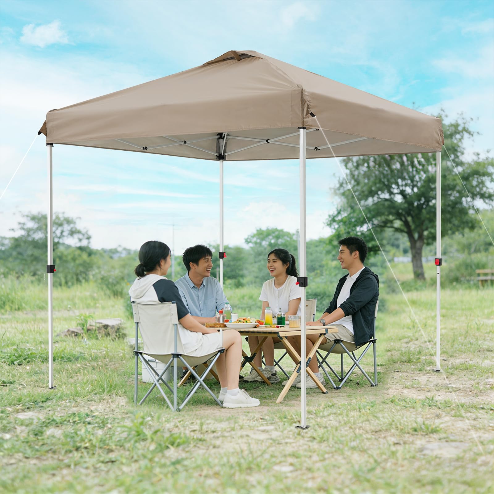 FLOUREE ワンタッチタープテント, キャンプ・スポーツイベント・商業イベント用, ポリエステル素材, ベージュ, 13.4kg, 250x250x270cm, UV保護99%, 炭素鋼フレーム, 防水