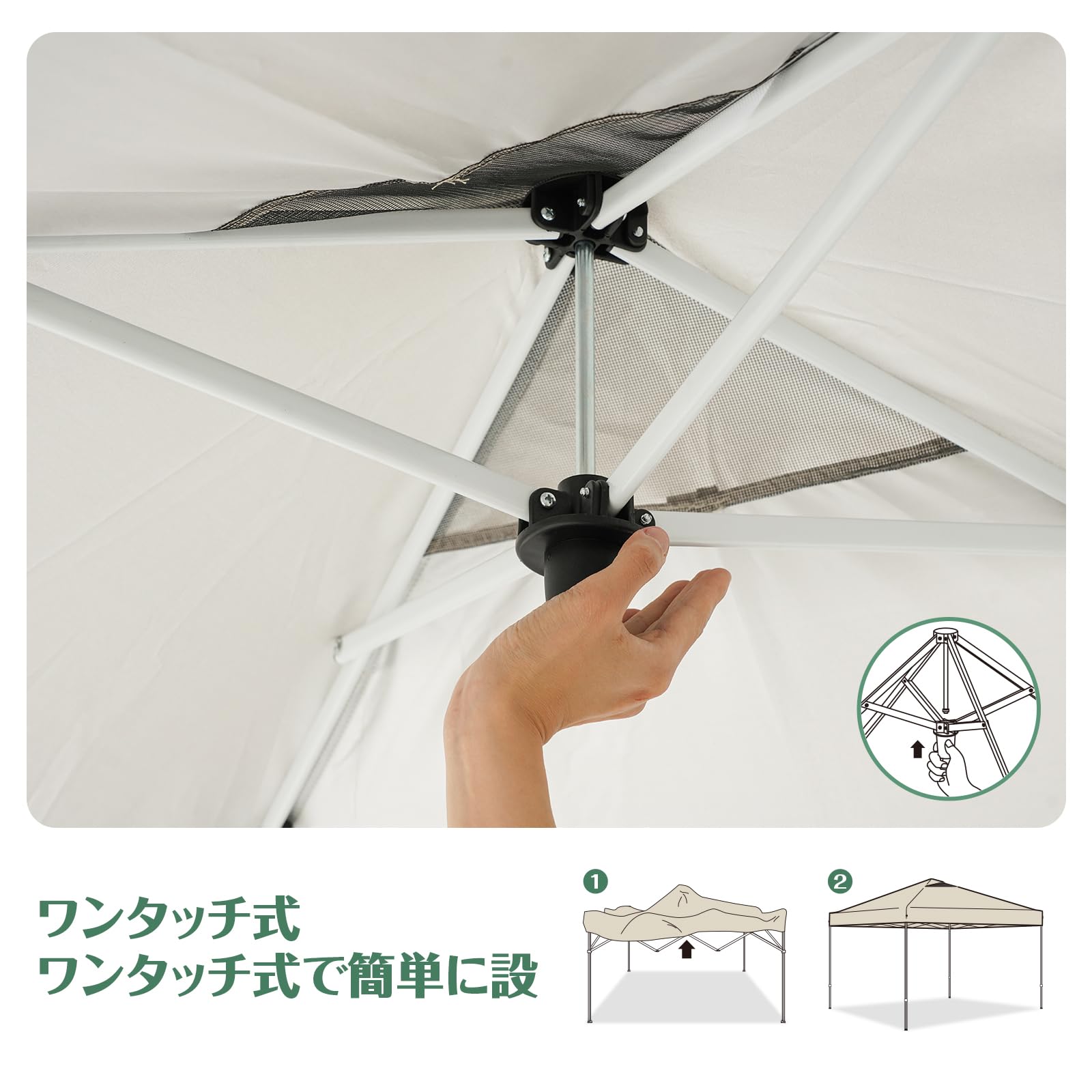 ApeexCanopy 設営簡単!!2.5m×2.5m ワンタッチタープテント 【センターロック】 スチールフレーム 風抜けベンチレーション 高耐水加工&シルバーUVカットコーティング 紫外線カット 遮熱 (タープテント本体, 2.5m)
