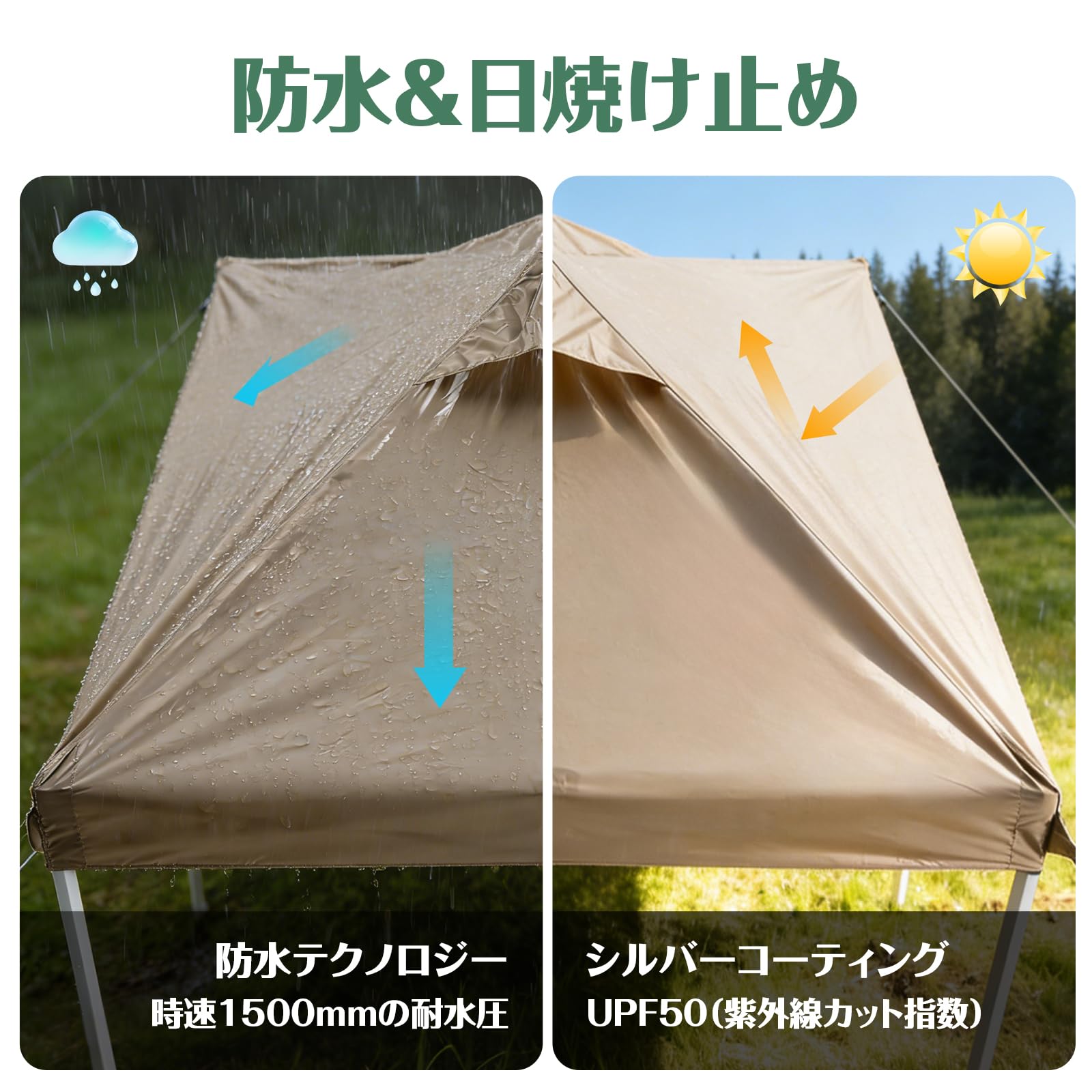 トップカバー2.5mx2.5m タープテント専用 UVカット 高耐水 ※トップカバーのみ(アーミーグリーン)