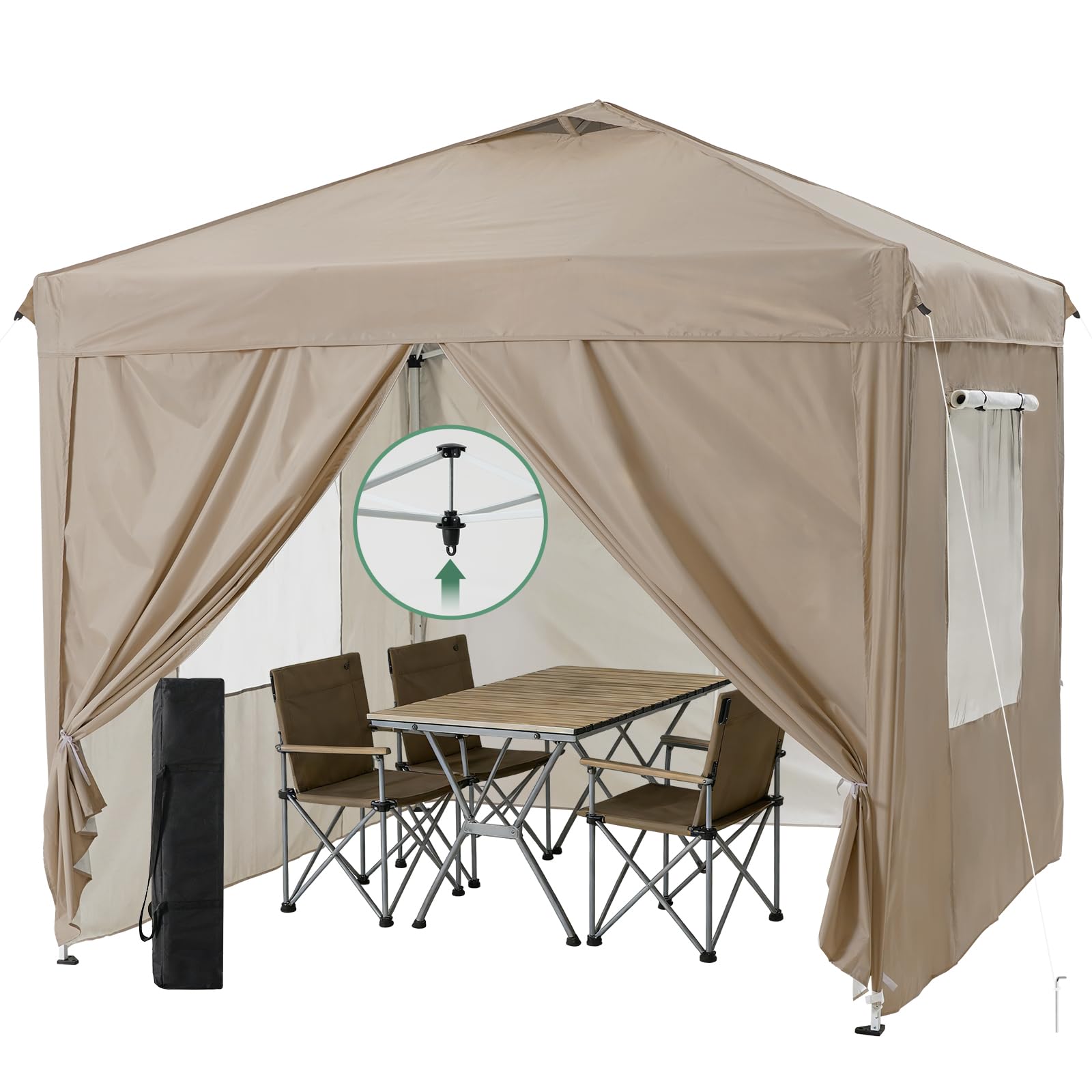 ToopTapu タープテント 【組立と運び簡単!!】【センターロック/収納バッグ】2.5×2.5m/3×3m 風抜けベンチレーション 3段階調節 スチールフレーム 8人用大型 組立簡単 UVカット 耐水 付属品付き ワンタッチ設営(軽量版) (ベージュ, 2.5mx2.5m)