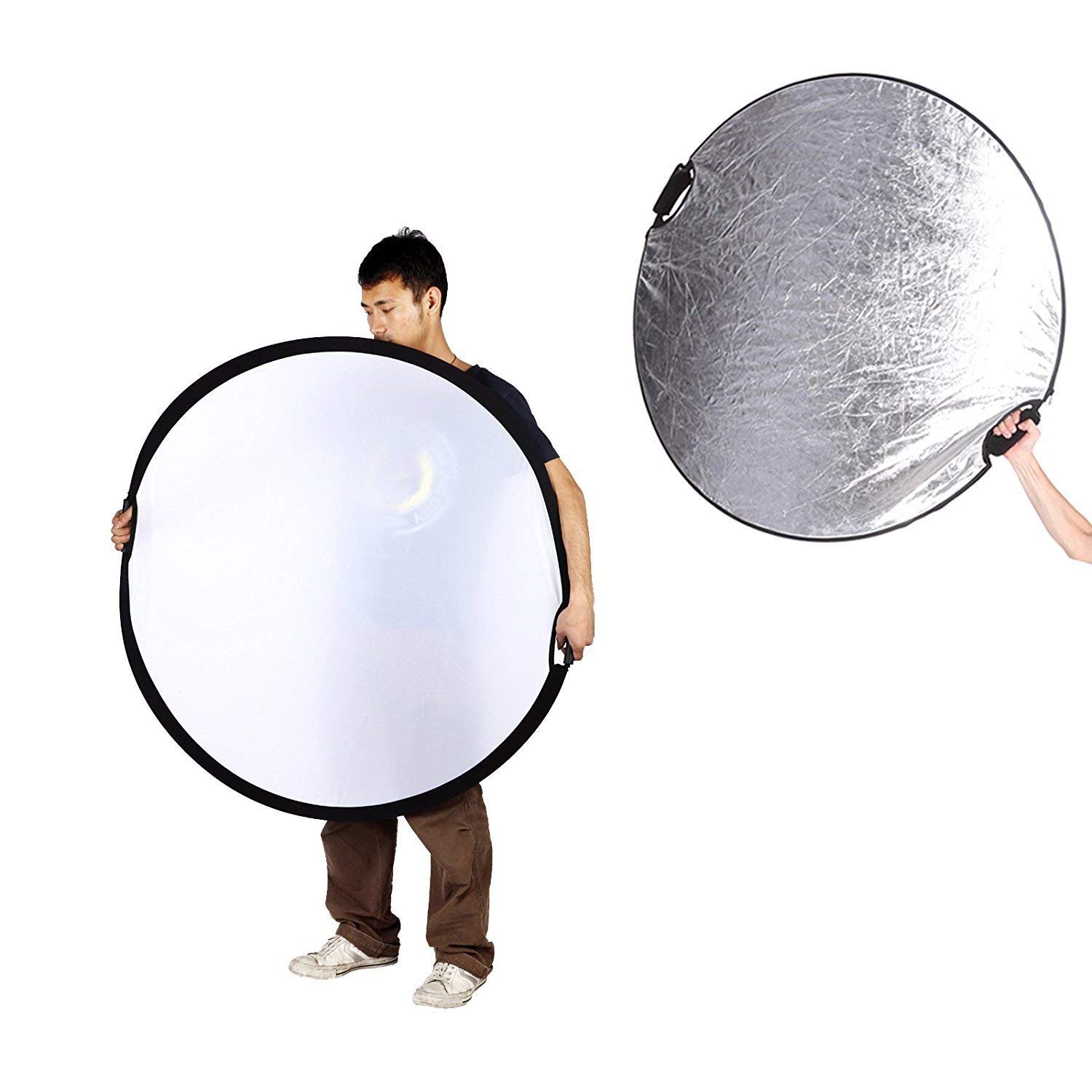 Selens 撮影用 レフ板 折りたたみ可能 直径30cm 小型 丸レフ板 反射板 銀/白 2-in-1 スタジオ撮影 補光 キャリーケース付き