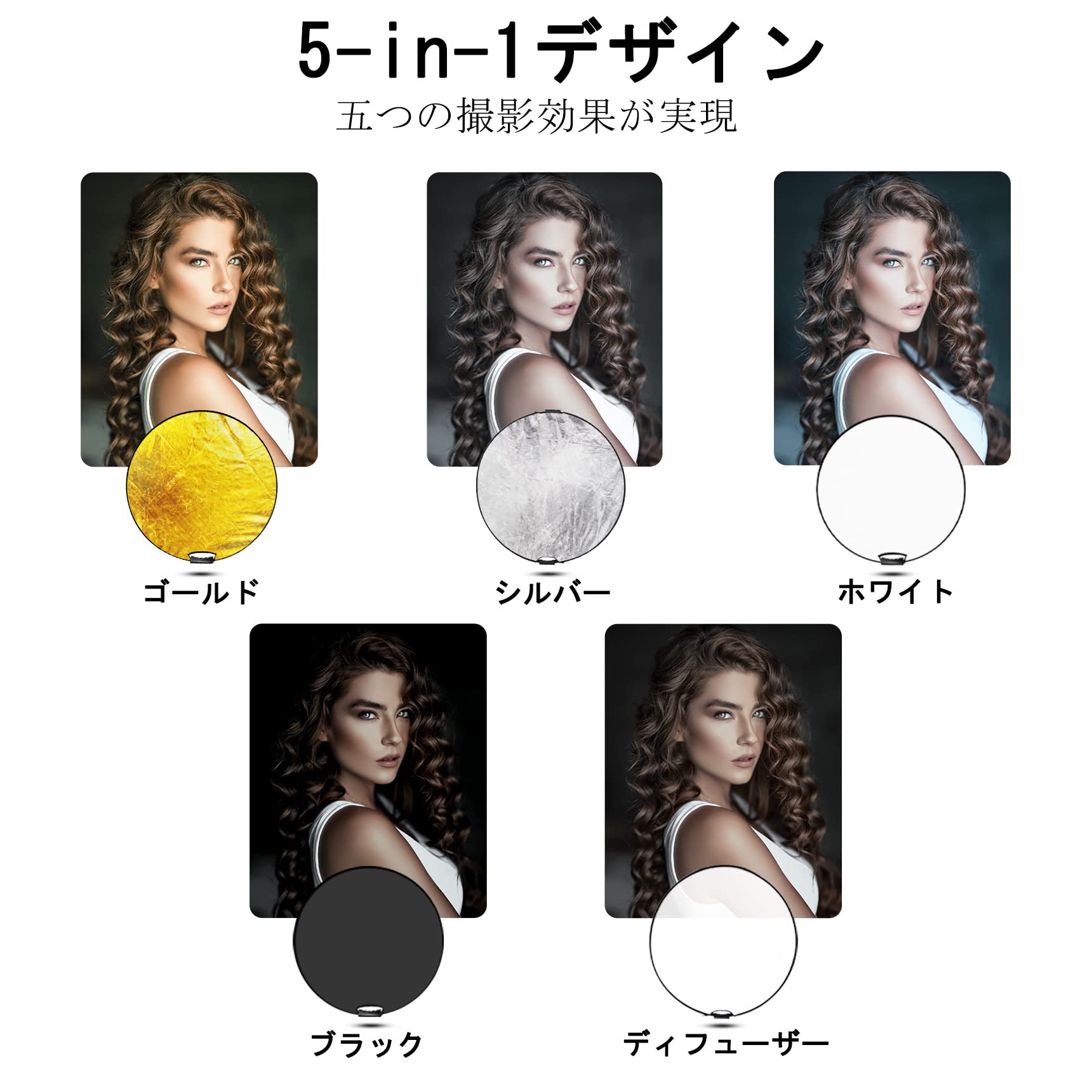 Selens 5-in-1 レフ板 110cm リフレクター クランプホルダー ハンドル付き 折りたたみ式 スタジオ撮影 人物撮影 商品撮影 室外撮影対応 (金/銀/白/黒/半透明)の5色対応