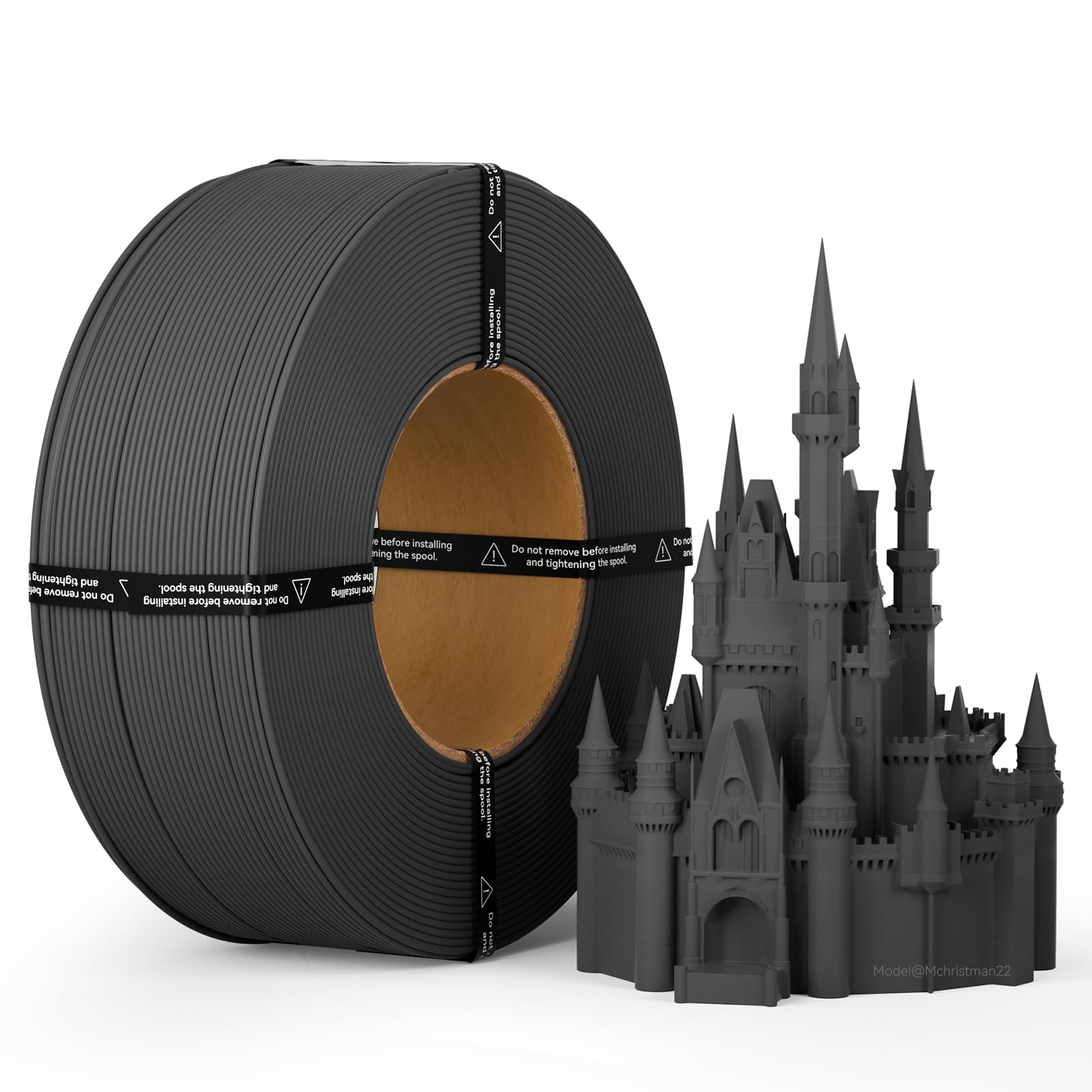 マットPLA 補充フィラメント 1.75mm ブラック 1kg スプールレス設計 寸法精度±0.02mm 繰り返し使用可能スプール対応 3Dプリンター用 グレー