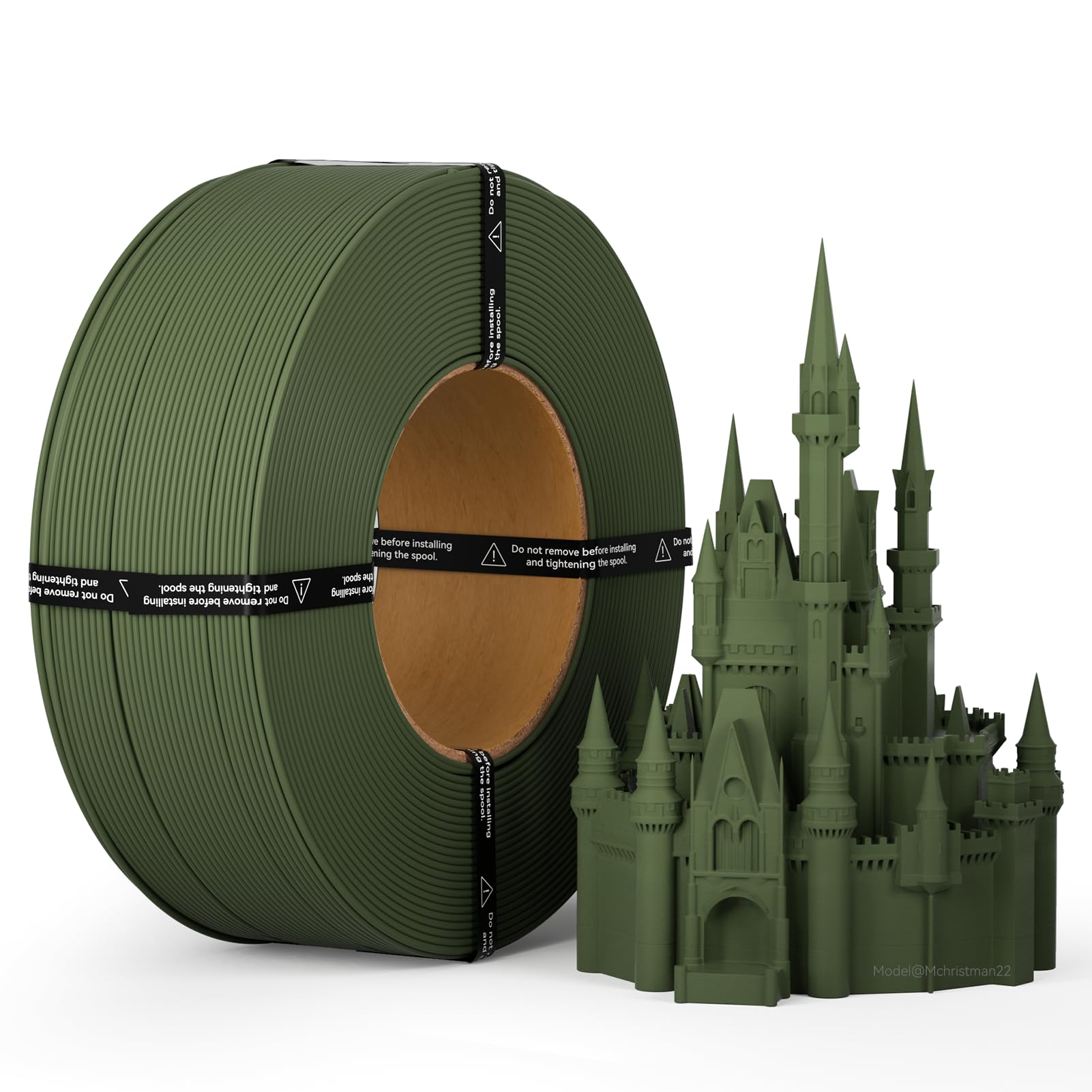 マットPLA 補充フィラメント 1.75mm ブラック 1kg スプールレス設計 寸法精度±0.02mm 繰り返し使用可能スプール対応 3Dプリンター用 緑
