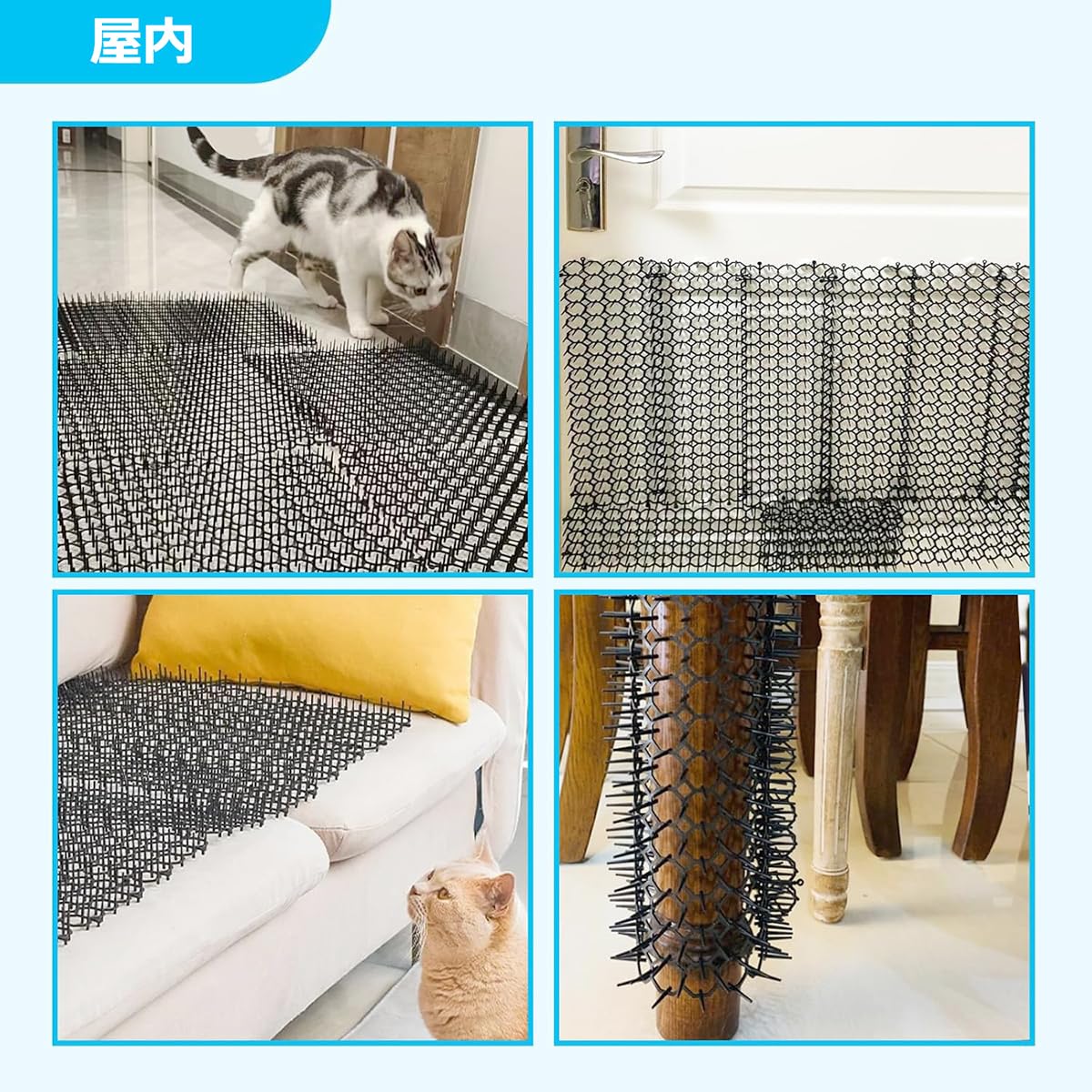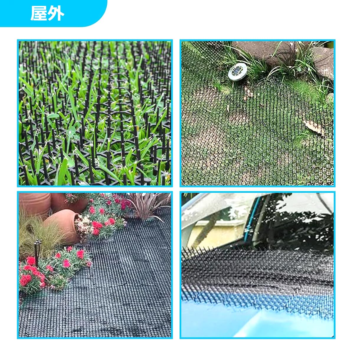 猫よけシート 12枚入り 止め釘8本・固定用ペグ付き 鳥よけ/鳩よけ兼用 とげマット 厚手メッシュ 木目調デザイン 猫避け/害獣侵入防止 畑 庭 プランター対応 野良猫対策グッズ
