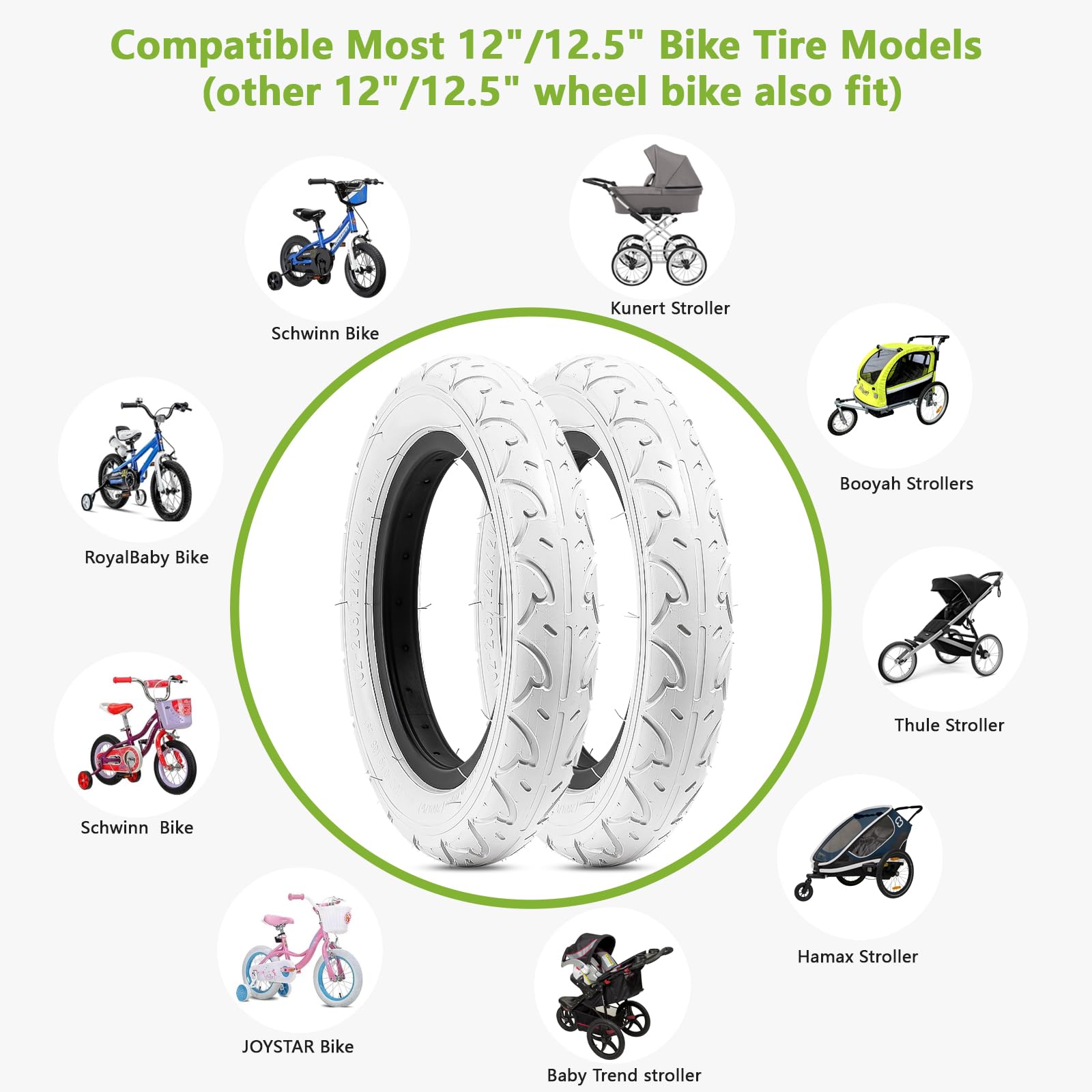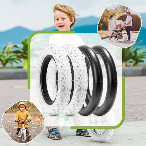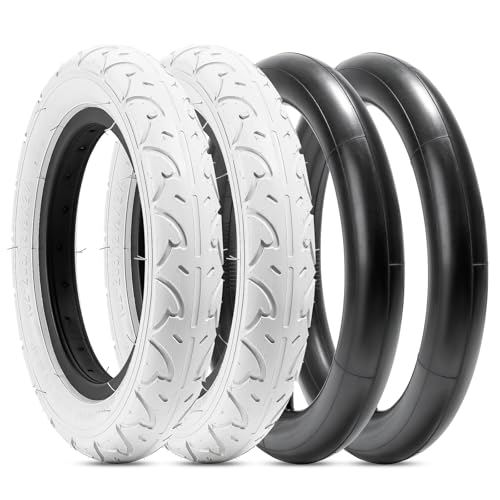 FengCan 2本セット 12 1/2 2 1/4 タイヤ,12 1/2x2 1/4 タイヤ+チューブ 肉厚 米式バルブ 32mm,適用12 1/2インチ子供自転車,タイヤ断面幅2 1/4インチ(BQ004,ホワイト)