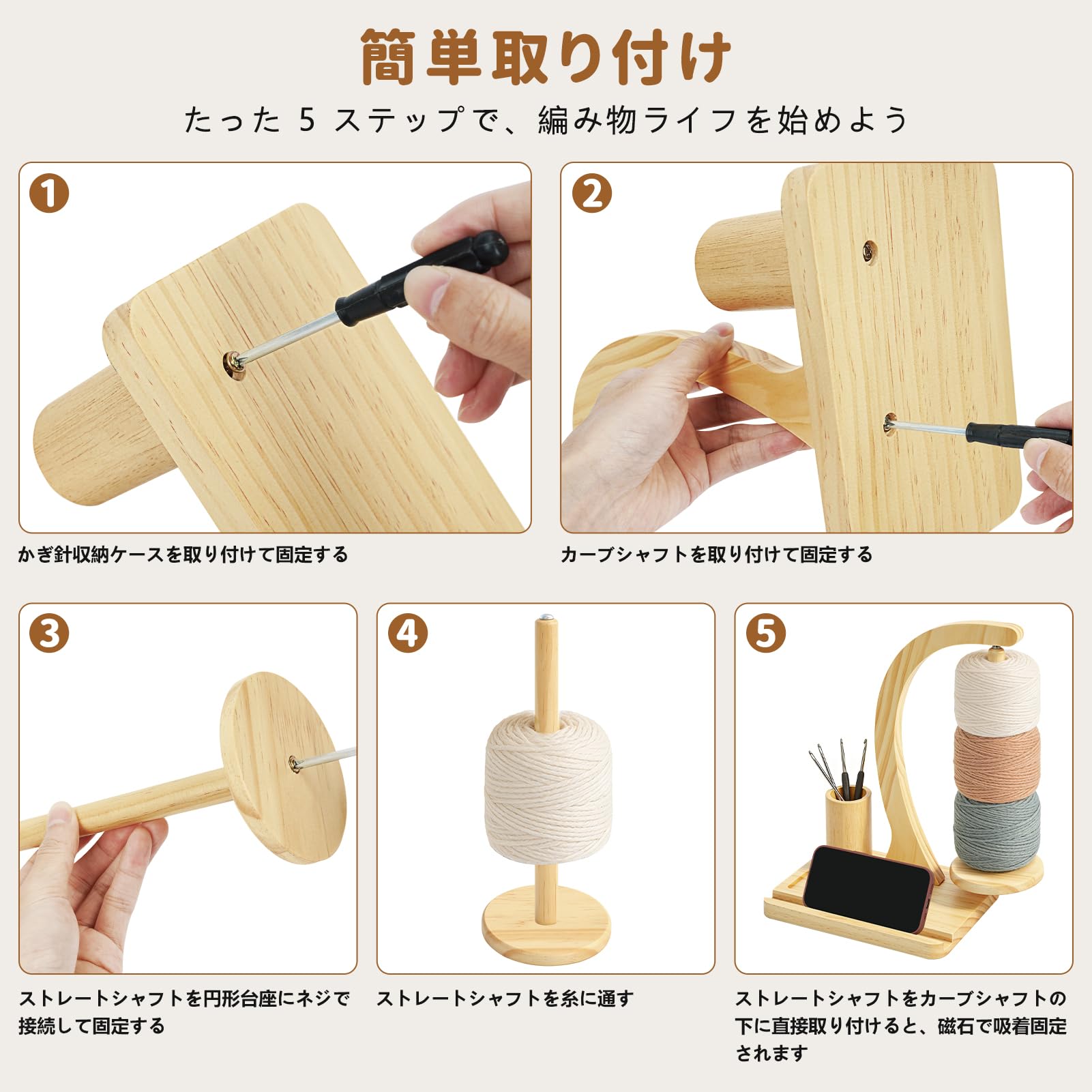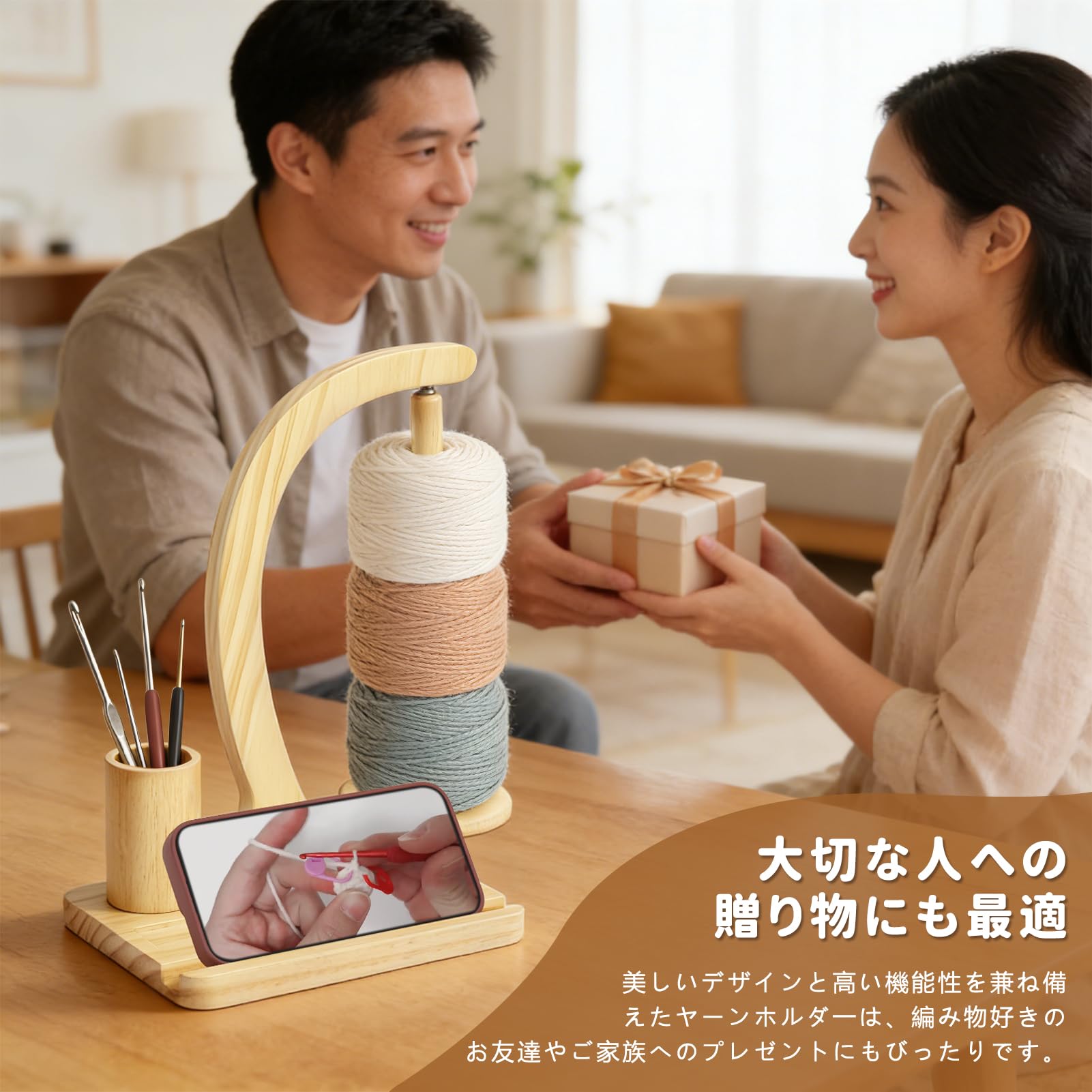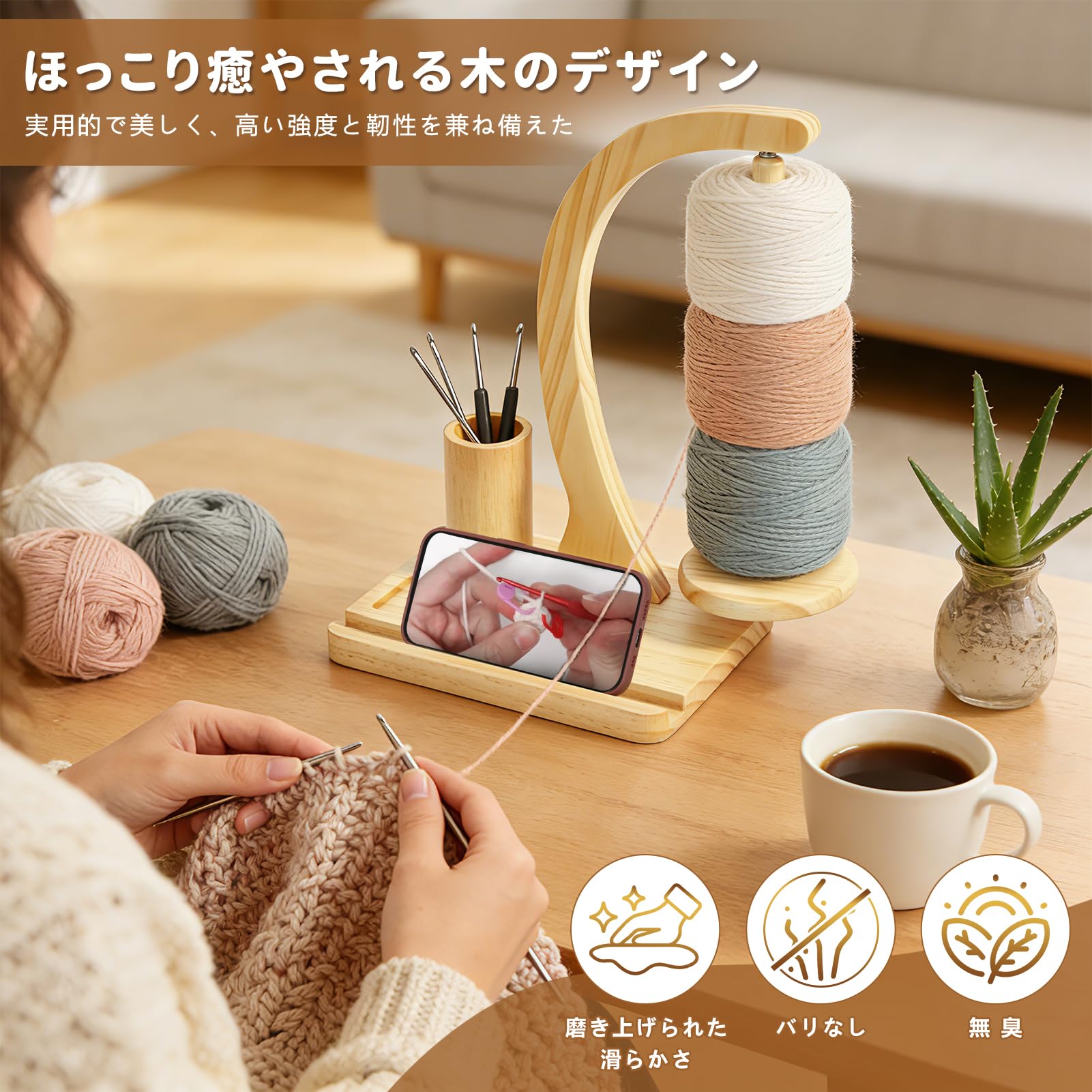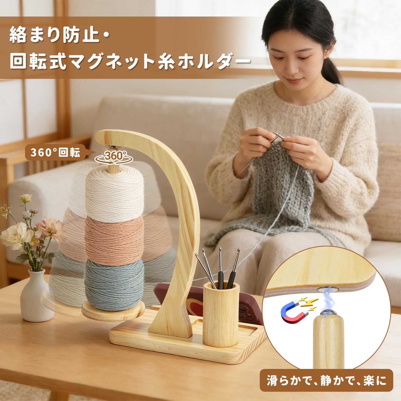 UHAPEER ヤーンホルダー 木製毛糸スタンド マグネット回転式 絡まり防止 編み針収納/ステッチマーカー収納/スマホスタンド付き3-in-1 かぎ針編み愛好家/編み物初心者向け ベストな手作りギフト 様々なタイプの毛糸に対応
