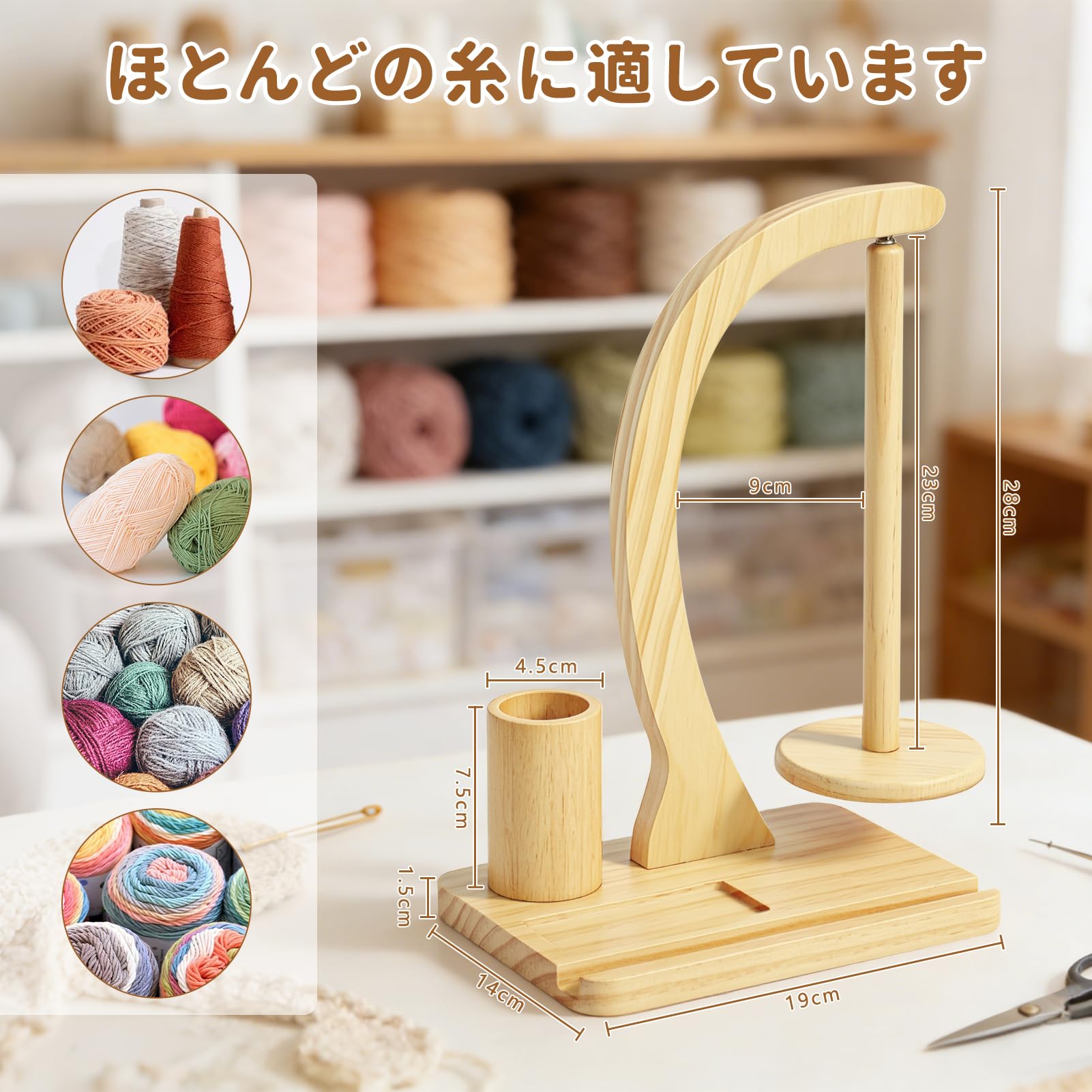 木製糸スタンド ヤーンホルダー 回転式 吊り下げ型 糸立て かぎ針編み・編み物用 糸ホルダー ヤーンホルダー 木製 ポータブル ヤーンディスペンサー 毛糸玉スタンド 手作りギフトにも最適 コーン巻き ディスペンサー 編み物ツール