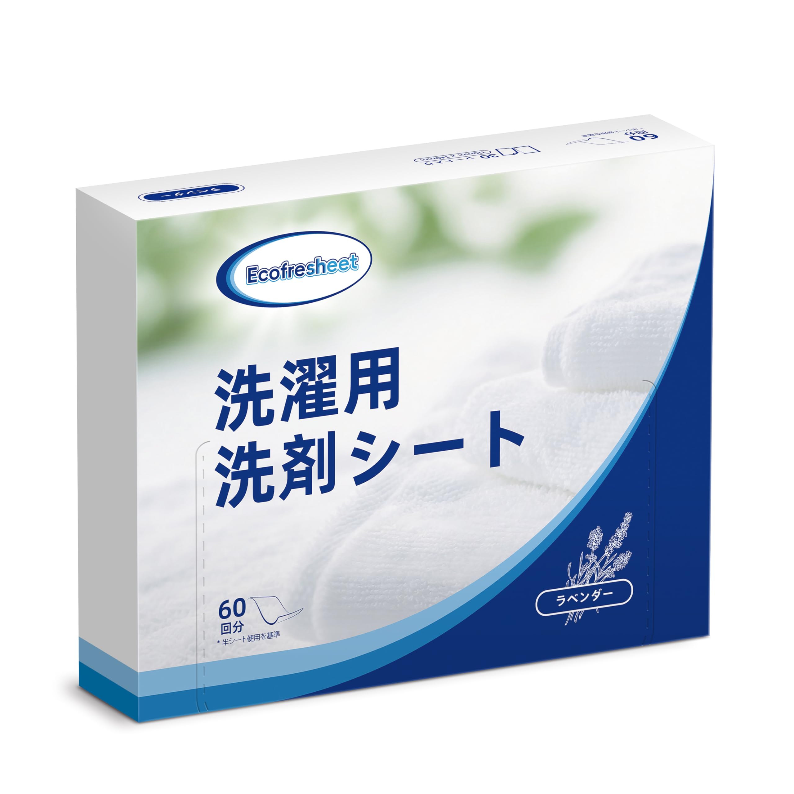 Ecofresheet 洗濯シート 60回分|速溶・無残留|軽量エコ 旅行用サイズ ラベンダー香り|環境配慮