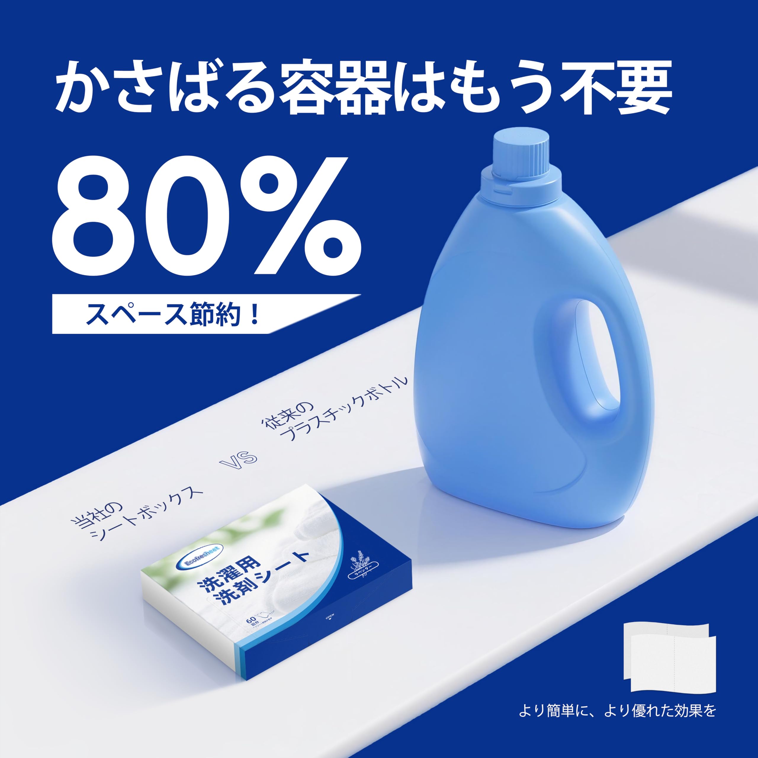 Ecofresheet 洗濯シート 60回分|速溶・無残留|軽量エコ 旅行用サイズ|リネン香り・環境配慮