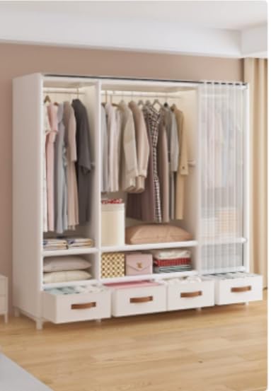 SUKIZUKI ワードローブ クローゼットハンガー カバー付き 収納棚 衣類収納ラック 幅150CM×奥行45CM×高さ170CM シンプル ハンガーラック 整理タンス 洋服掛け 大容量 組み立て式 防水 防塵 防汚