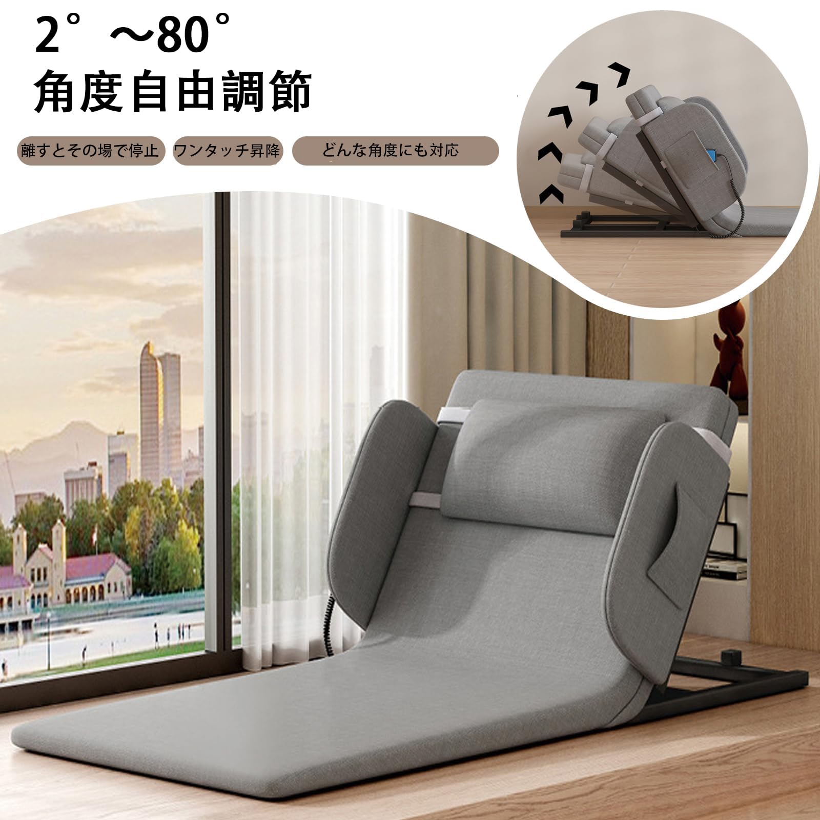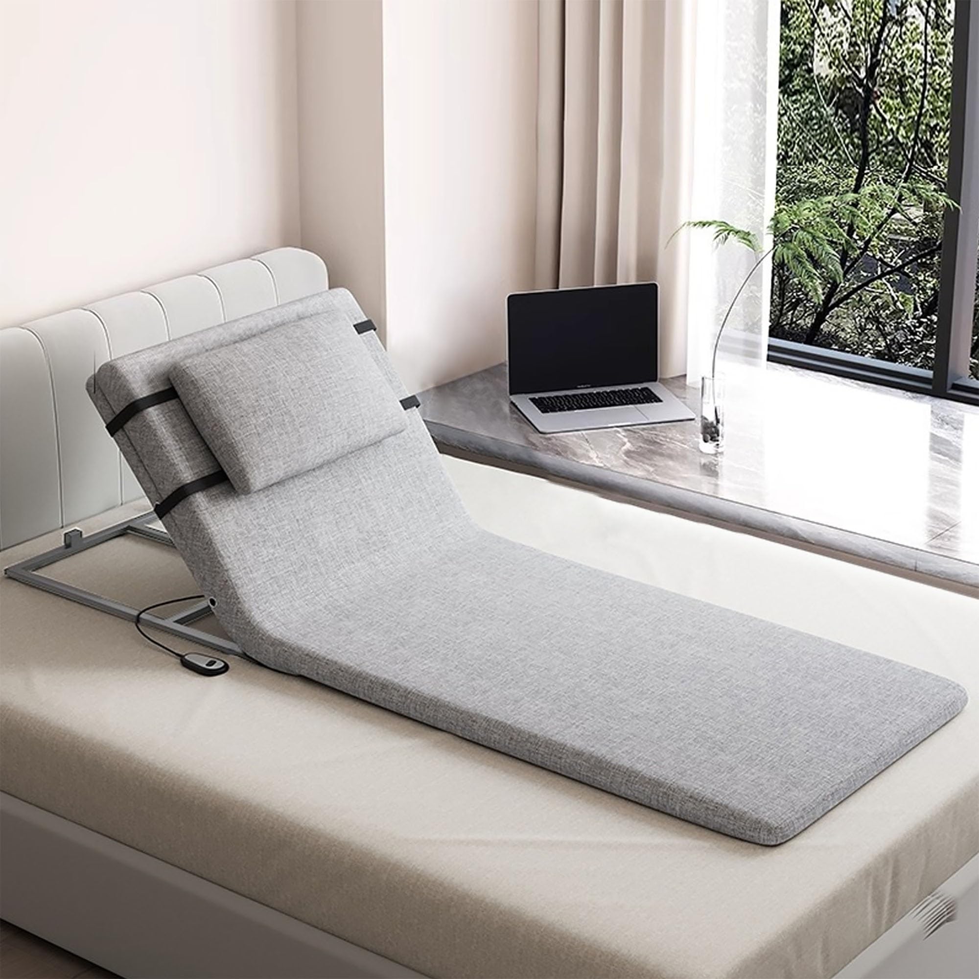 Monliguet 電動 背もたれ 電動リクライニング ベッド 起き上がり補助 介護ベッド用 電動座椅子 後付けタイプ 角度調整 2~80° 折りたたみ可能 リモコン付き 静音モーター 高齢者 家庭用 介護用 背もたれ 背起こし補助 日本語取説付き (ショート, ガードなし)