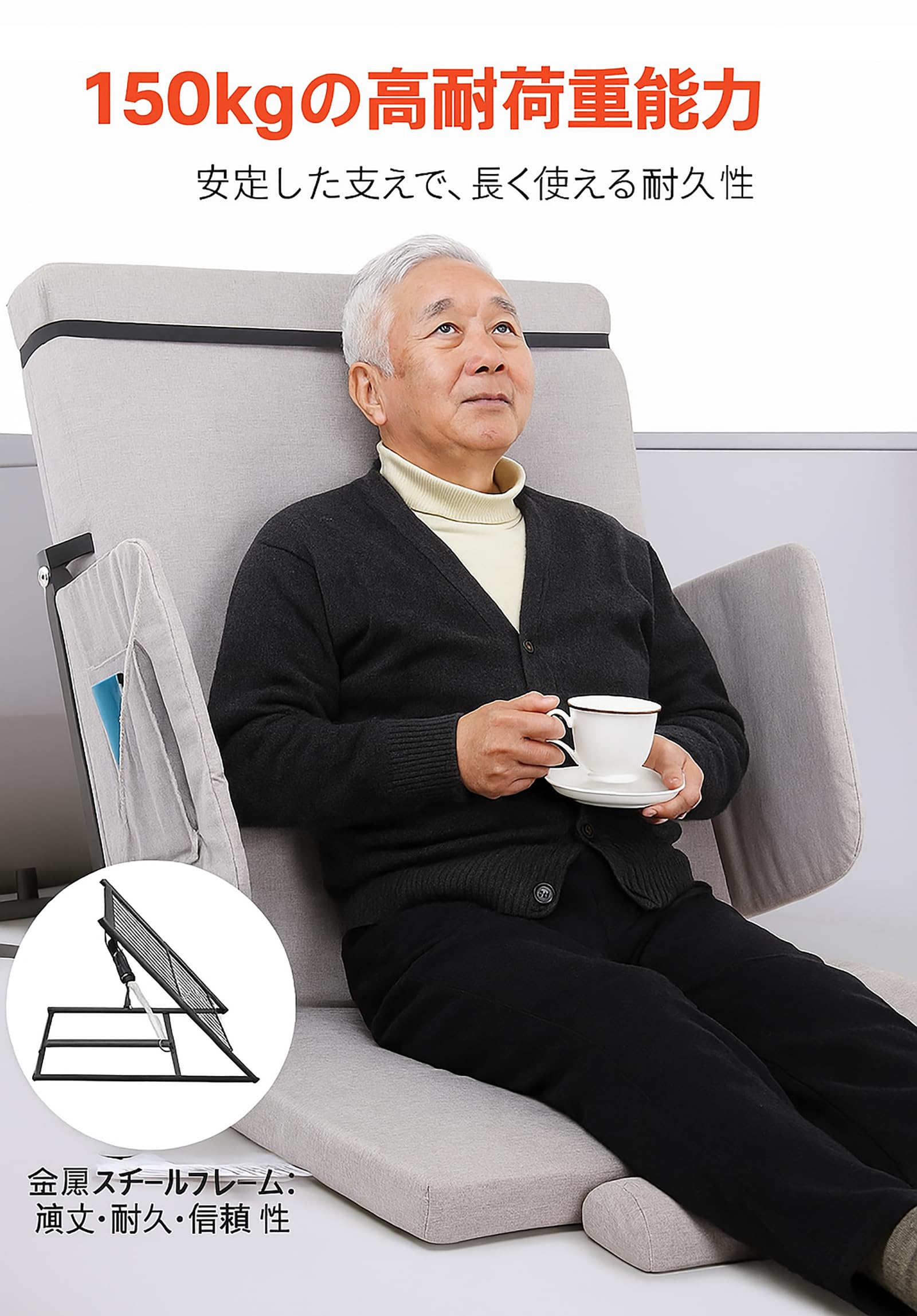 Monliguet 電動 背もたれ 電動リクライニング ベッド 起き上がり補助 介護ベッド用 電動座椅子 後付けタイプ 角度調整 2~80° 折りたたみ可能 リモコン付き 静音モーター 高齢者 家庭用 介護用 背もたれ 背起こし補助 日本語取説付き (ロング, ガードあり)
