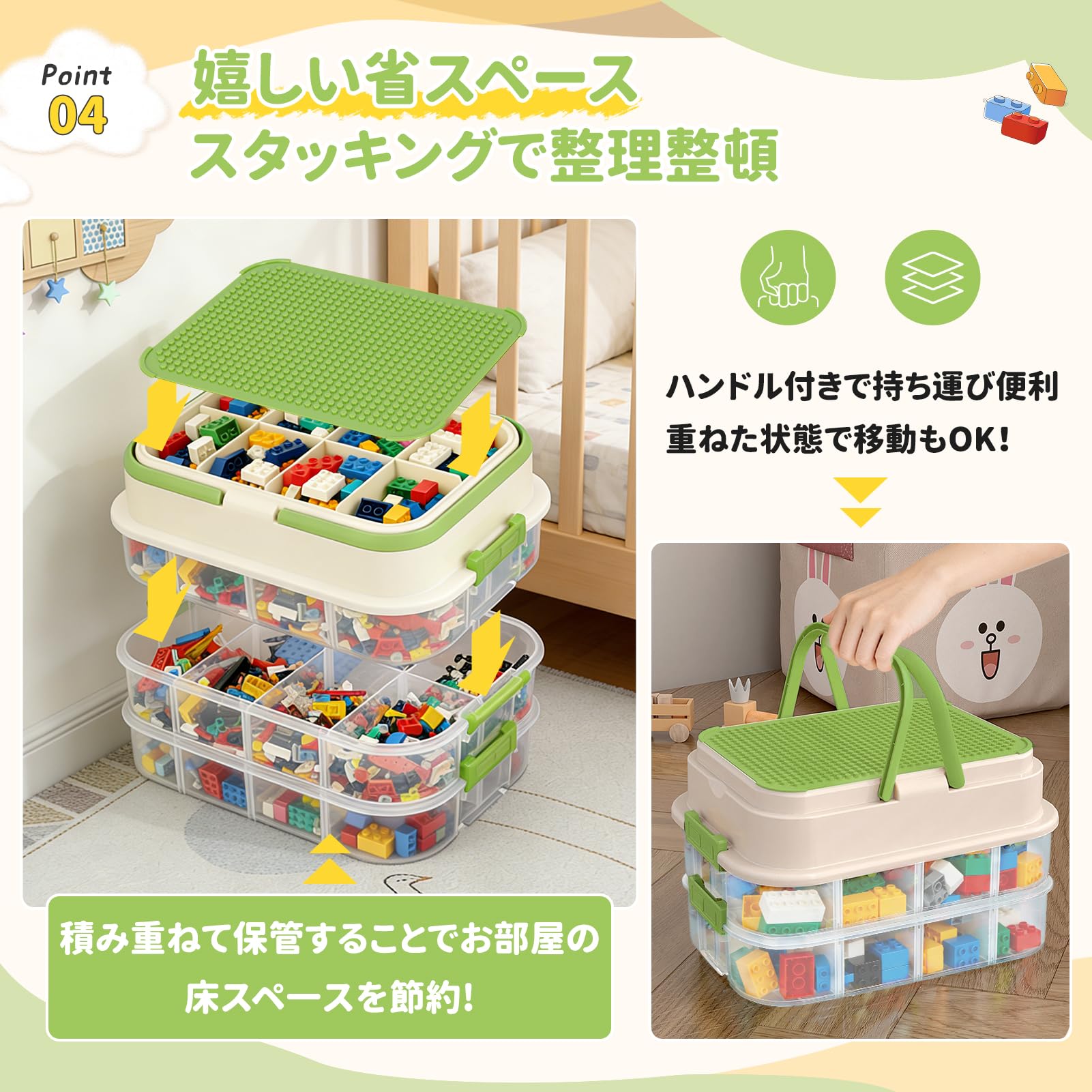LAMPTOP おもちゃ 収納 蓋付き 収納ボックス おもちゃ箱 収納 トミカ用 整理ボックス 玩具収納 プラスチック製 2段 積み重ね 透明 整理整頓(グリーン)