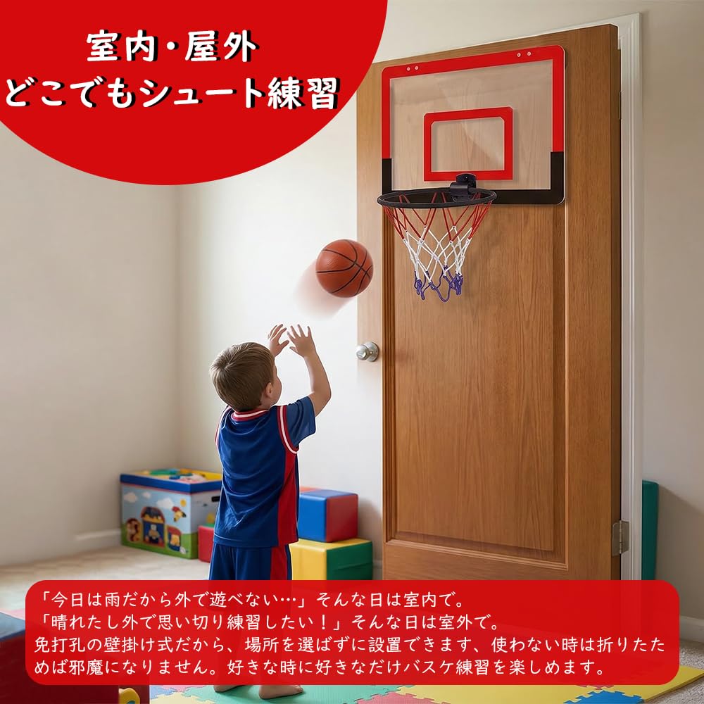 DYNAVERT バスケットゴール 壁掛け式 室内 屋外 兼用 子供用 バスケ ゴール バスケ用品 ボール1個付き 空気入れセット シュート練習 折り畳み式 収納便利