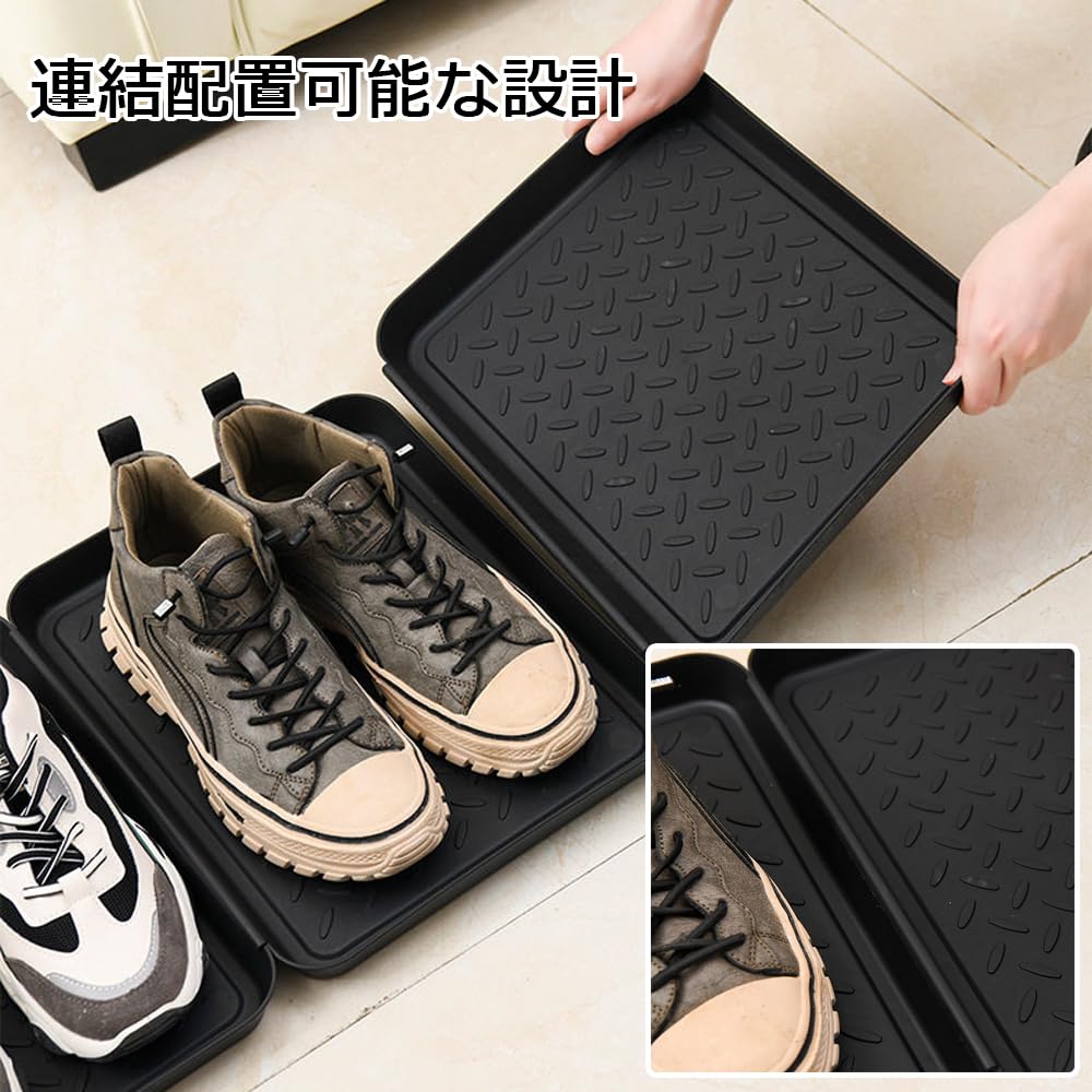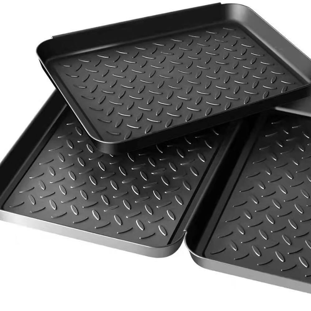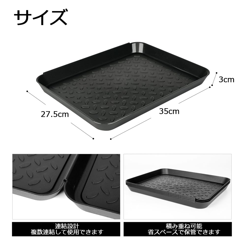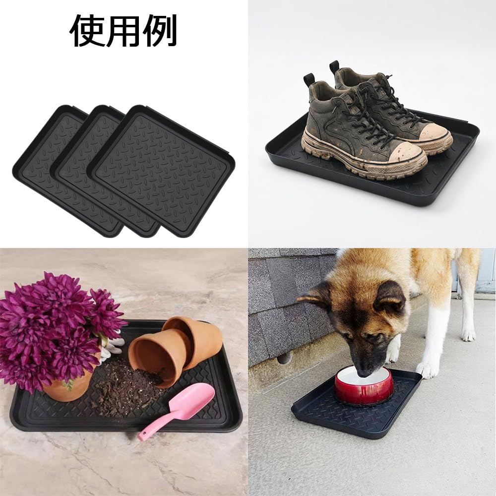 Mikankawa 靴置きトレイ 車内用 3個入り 35x27.5cm 滑り止めパターン 清潔にしやすい 多目的使用 トレー 重ねて収納可能
