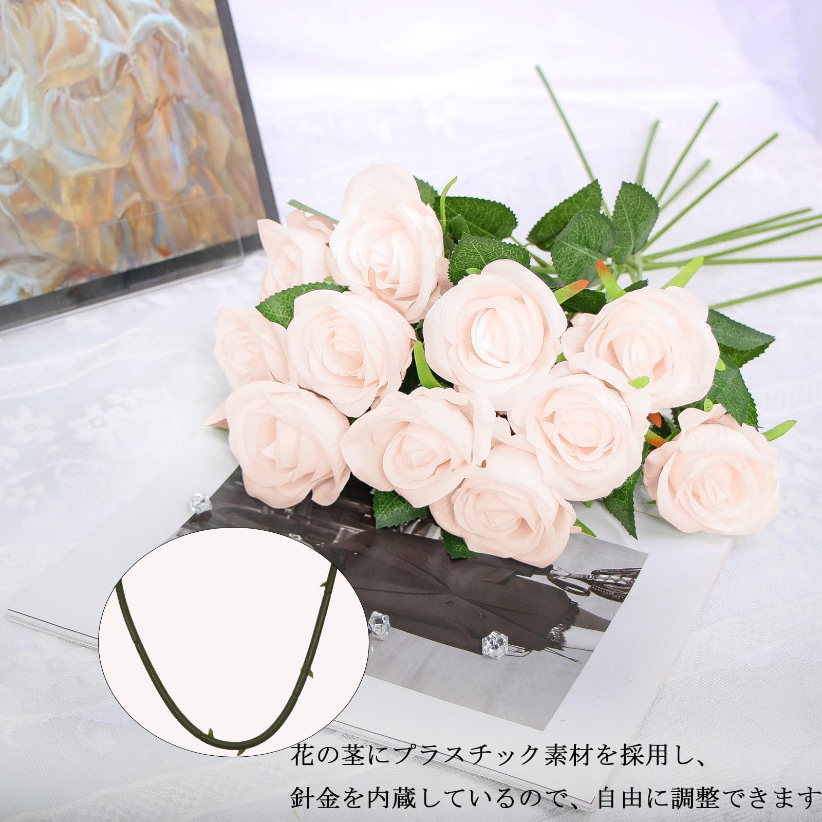 Vixplorn 造花 バラ 10本セット シルクフラワー 花束 フェイクフラワー おしゃれ 母の日 結婚式 誕生日 入学式 装飾用 バレンタインデー ギフト 花径7cm*長さ50cm