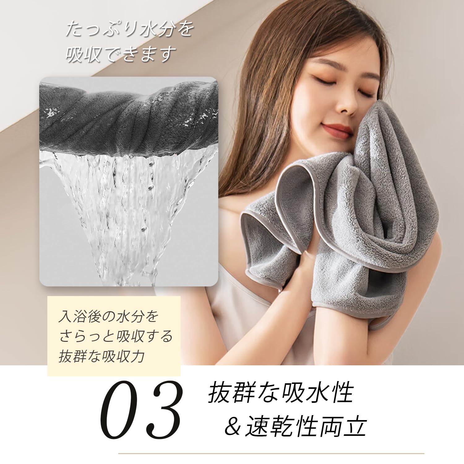 フェイスタオル 速乾 通気 吸水 10枚セットマイクロファイバー 34×75cm ふわふわ 家庭用 タオル 軽量肌に優しい タオルセット (グレー)