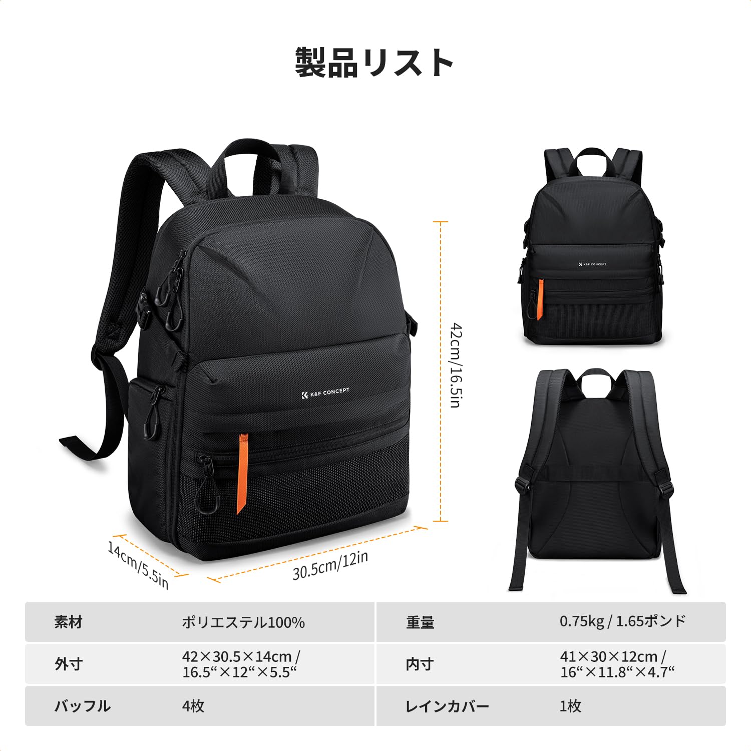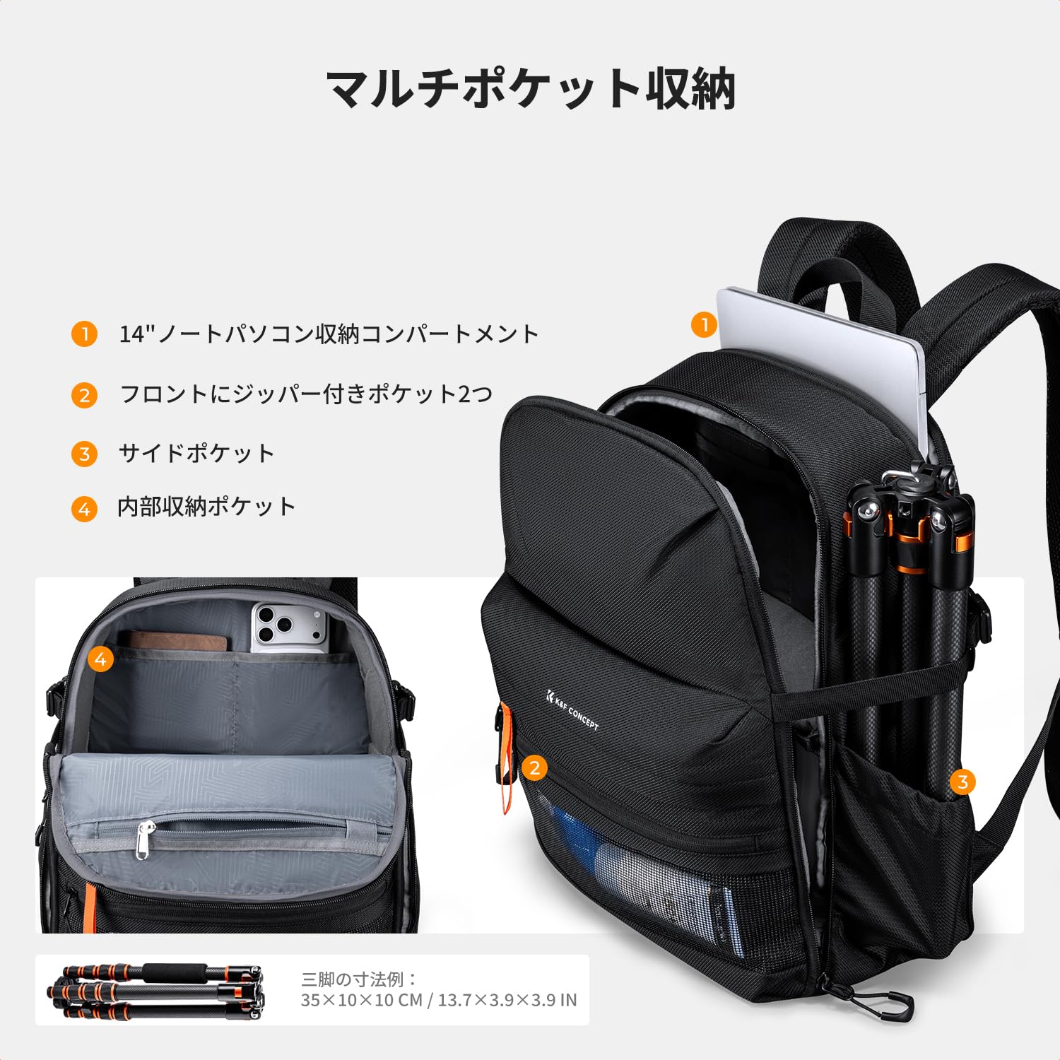 K&F Concept カメラリュック 一眼レフ カメラバッグ 防水 大容量 三脚 15.6インチpc収納可 レインカバー付 多機能 夜行安全保護 バックパック メーカー直営店