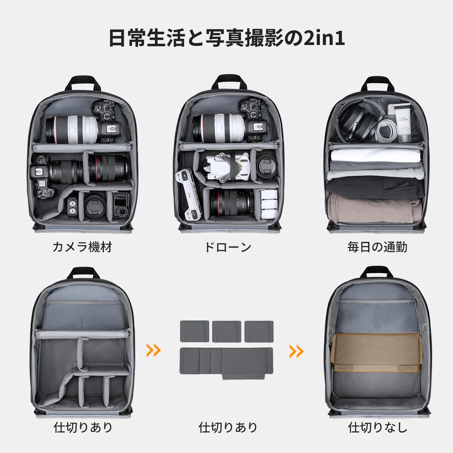 K&F Concept カメラバッグ カメラリュック リュックサック バックパック おしゃれ 一眼レフカメラバッグ 仕切り付き 撥水加工 軽量 5L