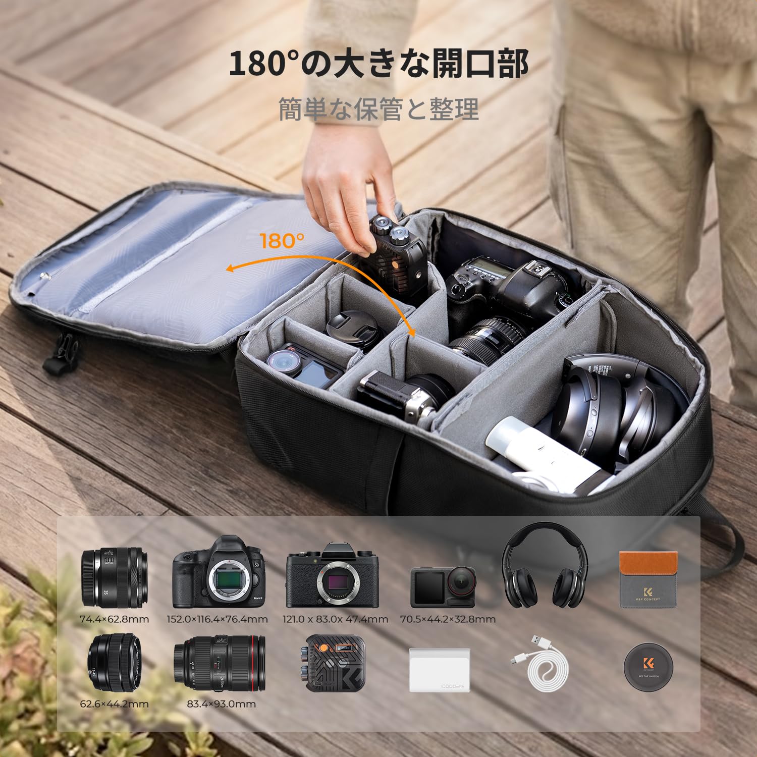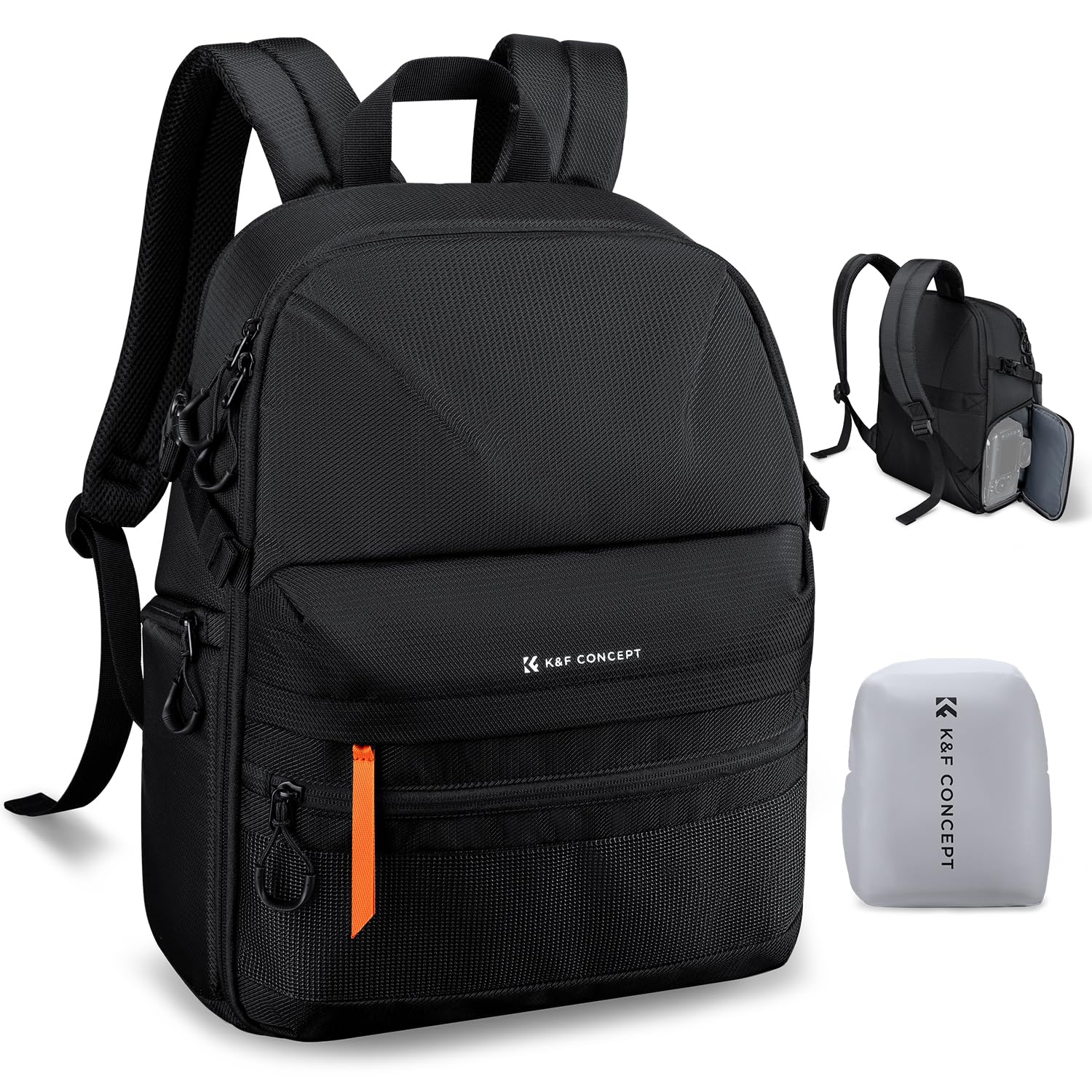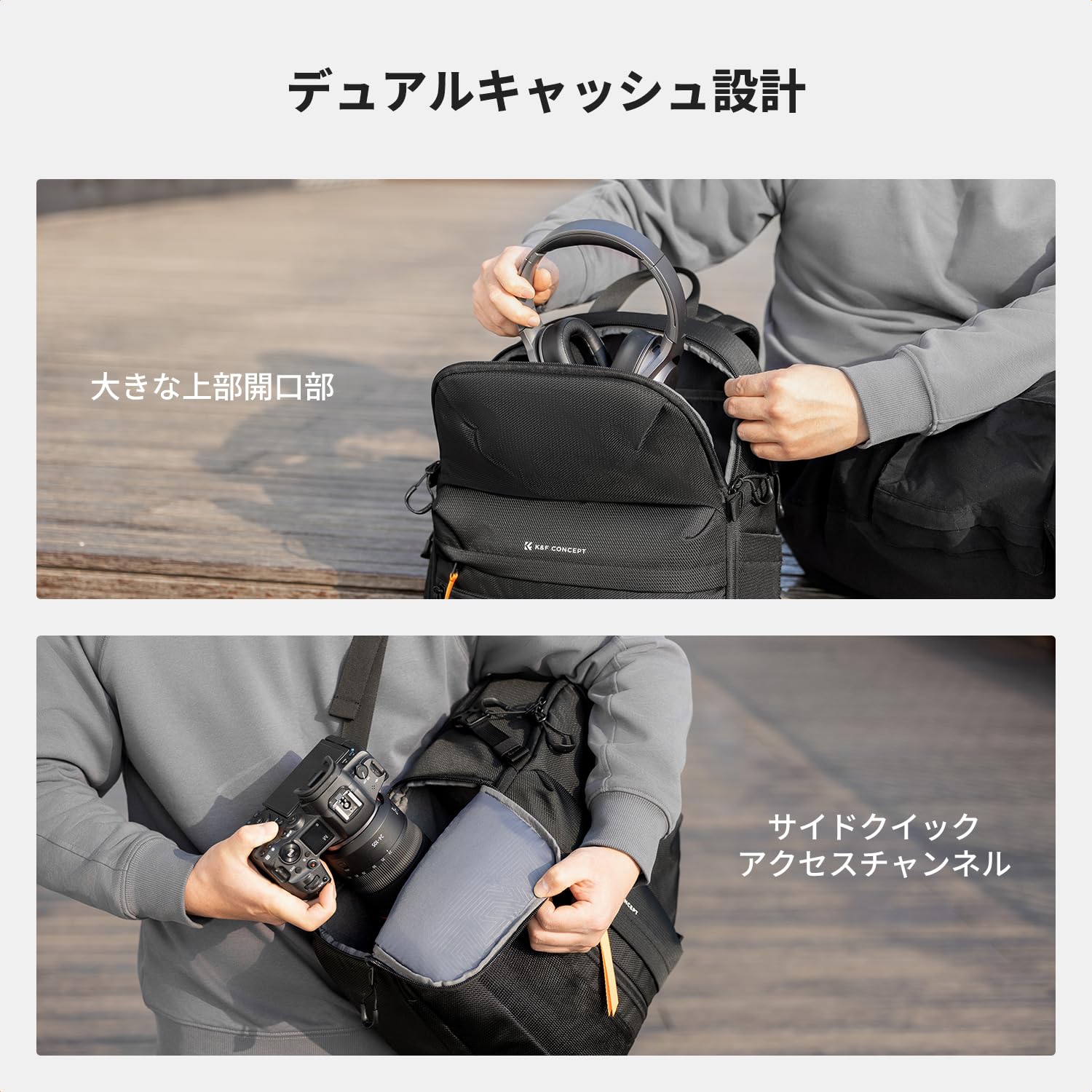 K&F Concept カメラバッグ おしゃれ カメラリュック カメラバックパック 2気室 20L 大容量 レインカバー付き 撮影バッグ 防水 一眼レフ/DSLRカメラ/レンズ/16インチPC/三脚収納可 出張/旅行/撮影用