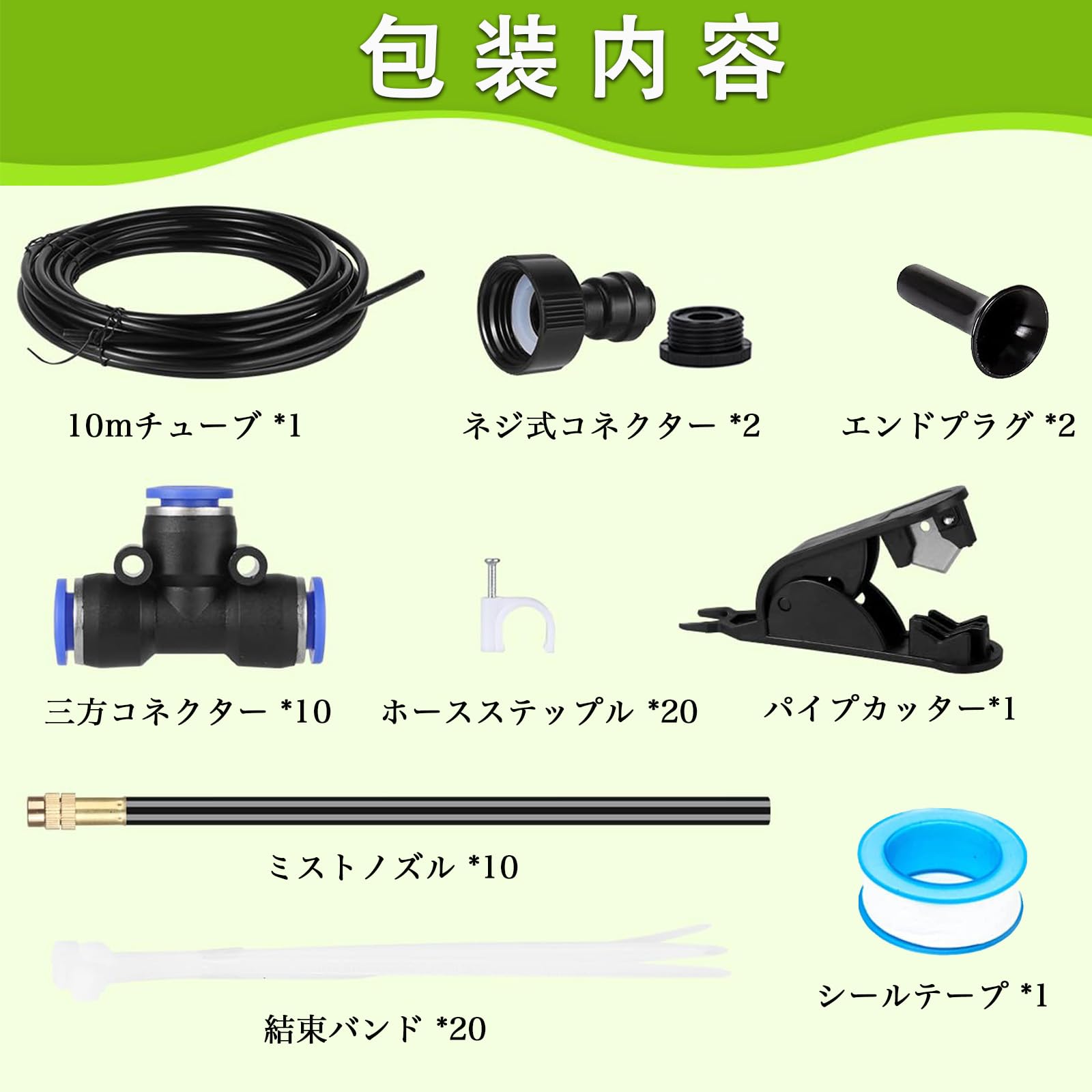 【360°自由調整ノズル】ミストシャワー 屋外用 10m 散水セット 噴霧ノズル ドリップ灌漑システム 自動水やり DIY 庭 園芸 冷却 热中症対策