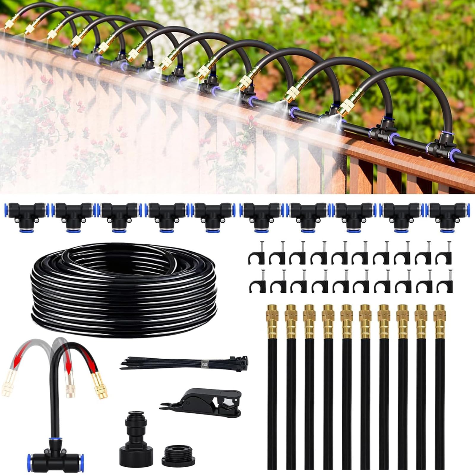 【360°自由調整ノズル】ミストシャワー 屋外用 30m 散水セット 噴霧ノズル ドリップ灌漑システム 自動水やり DIY 庭 園芸 冷却 热中症対策