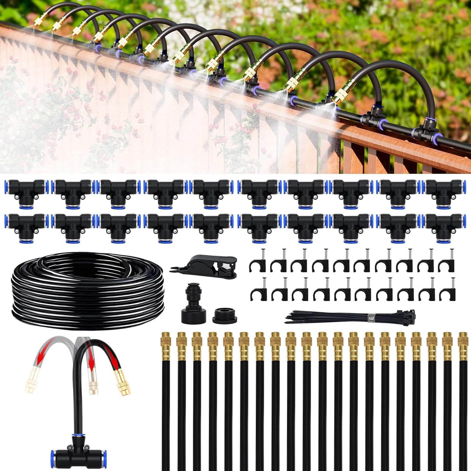【360°自由調整ノズル】ミストシャワー 屋外用 30m 散水セット 噴霧ノズル ドリップ灌漑システム 自動水やり DIY 庭 園芸 冷却 热中症対策