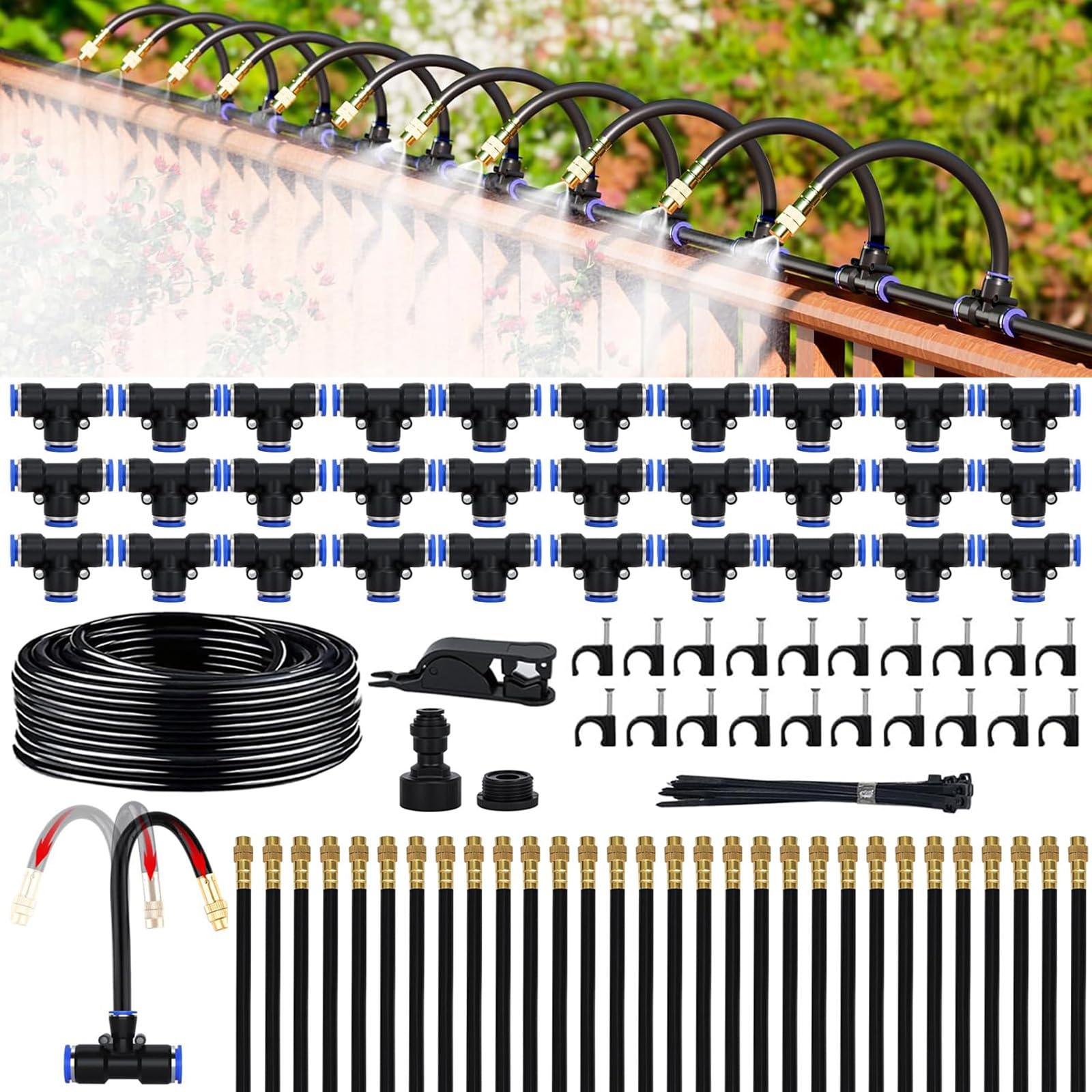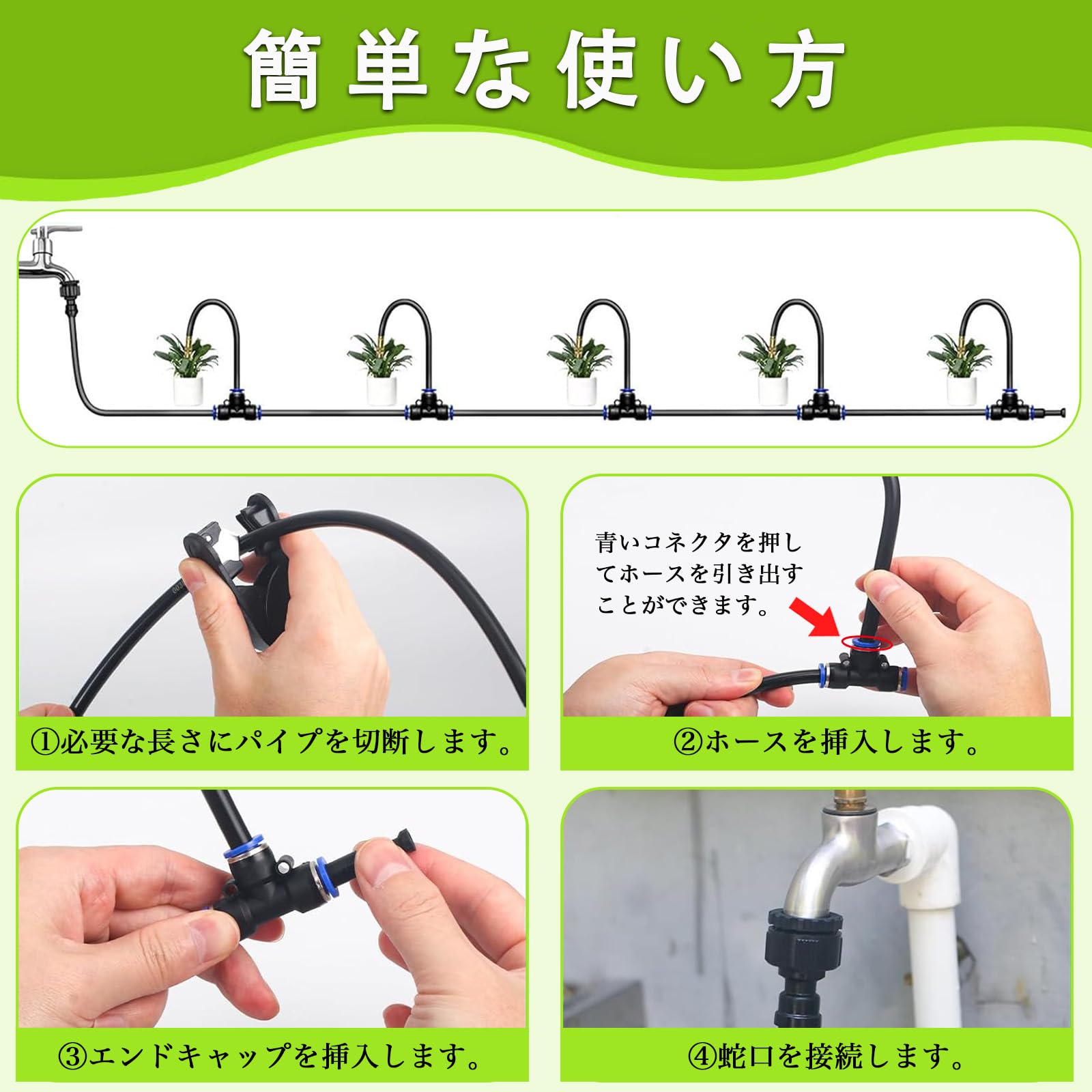 【360°自由調整ノズル】ミストシャワー 屋外用 30m 散水セット 噴霧ノズル ドリップ灌漑システム 自動水やり DIY 庭 園芸 冷却 热中症対策
