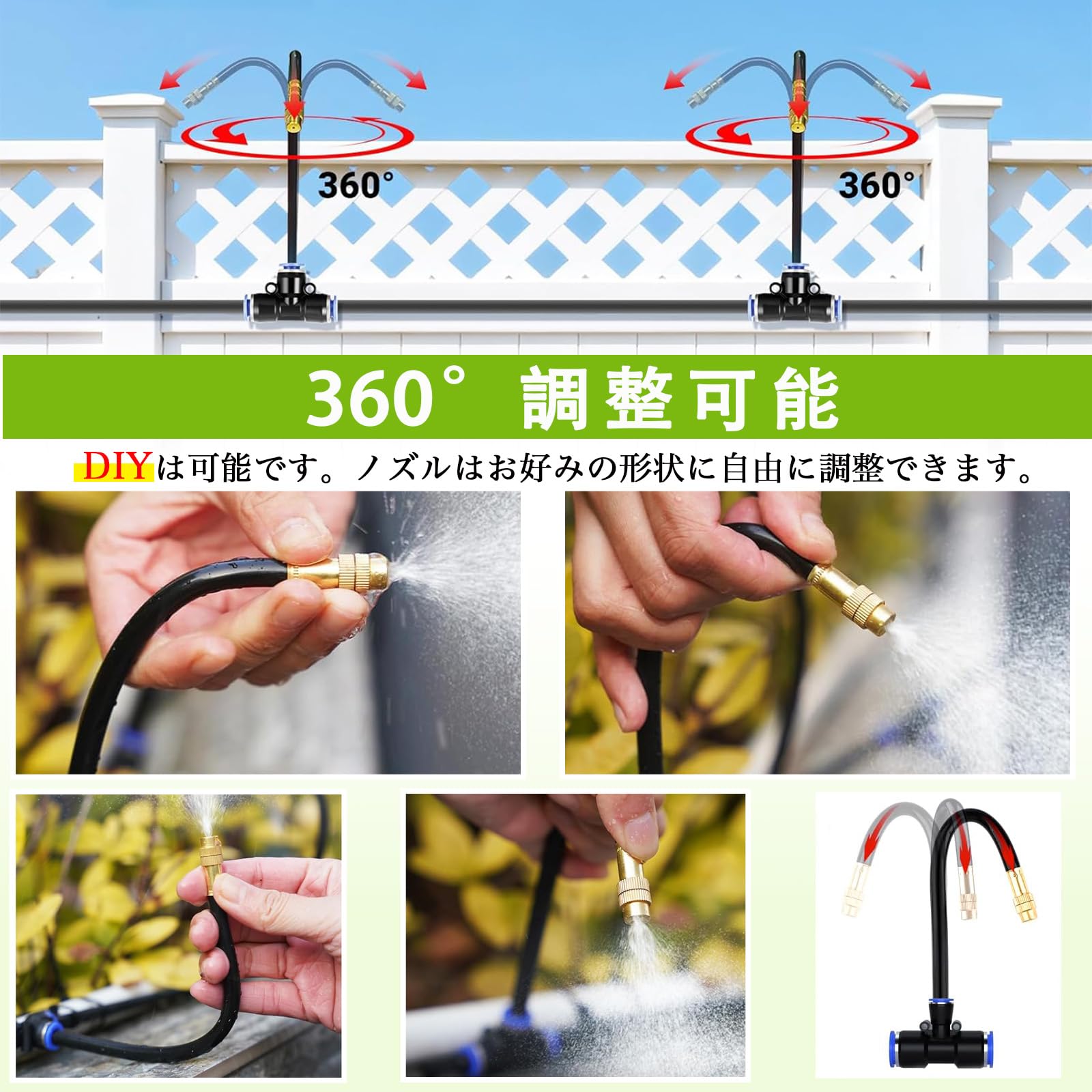 【360°自由調整ノズル】ミストシャワー 屋外用 10m 散水セット 噴霧ノズル ドリップ灌漑システム 自動水やり DIY 庭 園芸 冷却 热中症対策