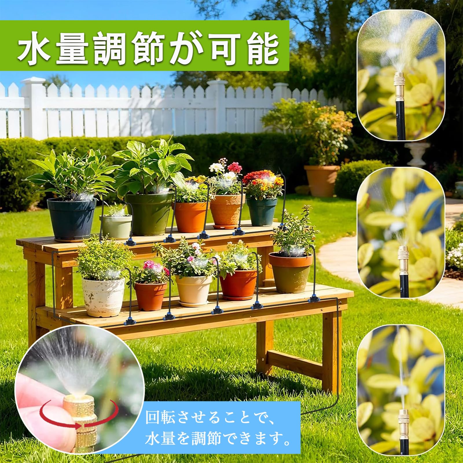 【360°自由調整ノズル】ミストシャワー 屋外用 20m 散水セット 噴霧ノズル ドリップ灌漑システム 自動水やり DIY 庭 園芸 冷却 热中症対策