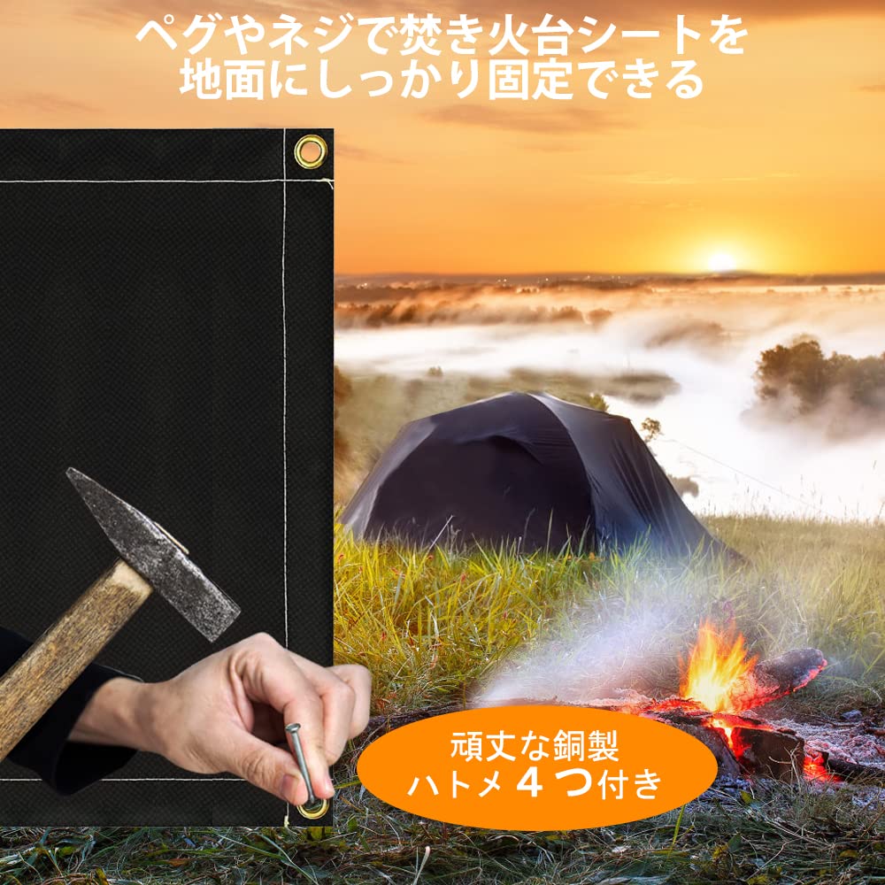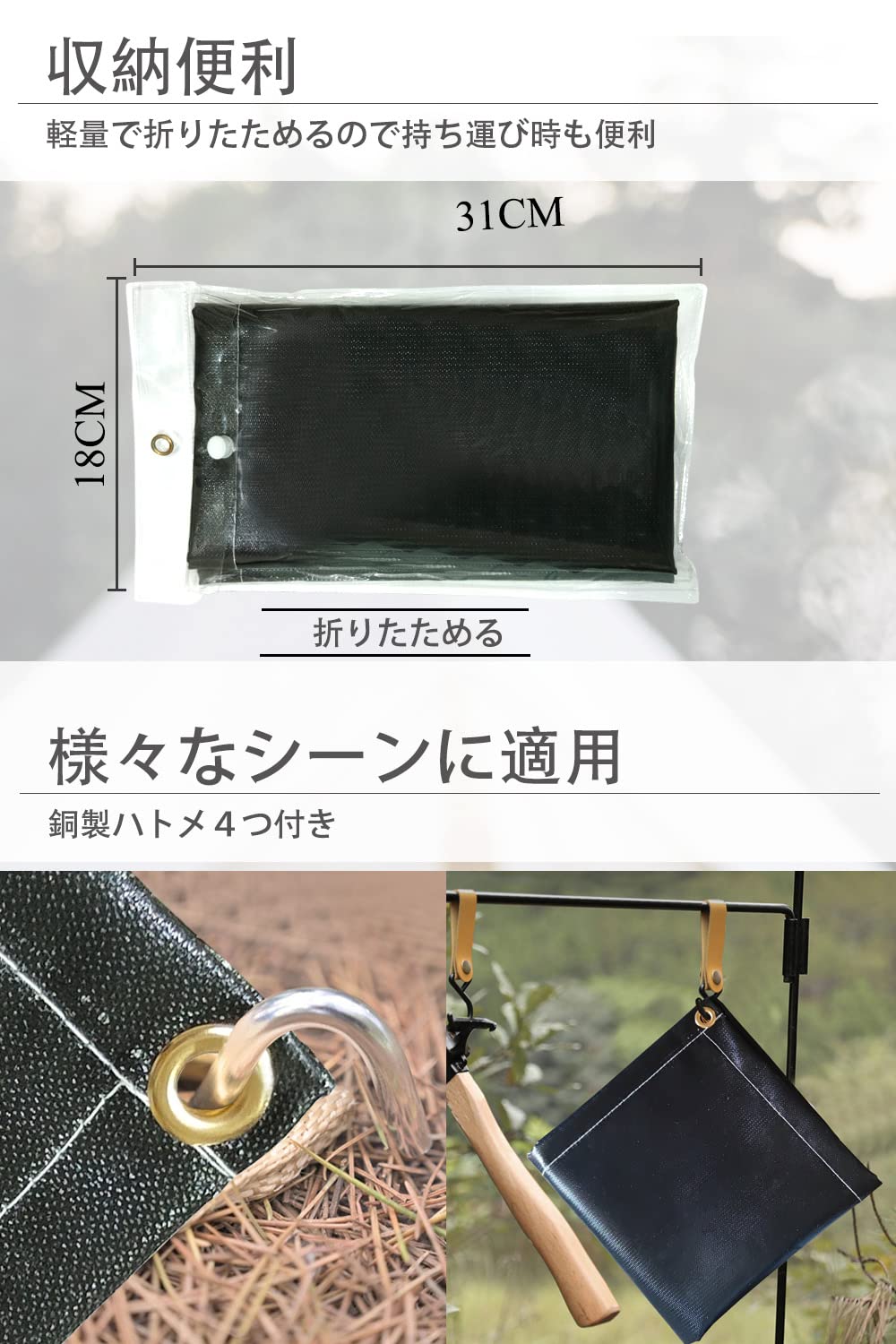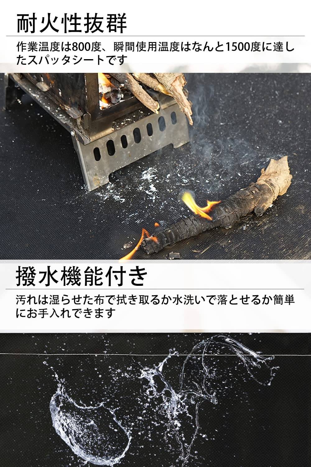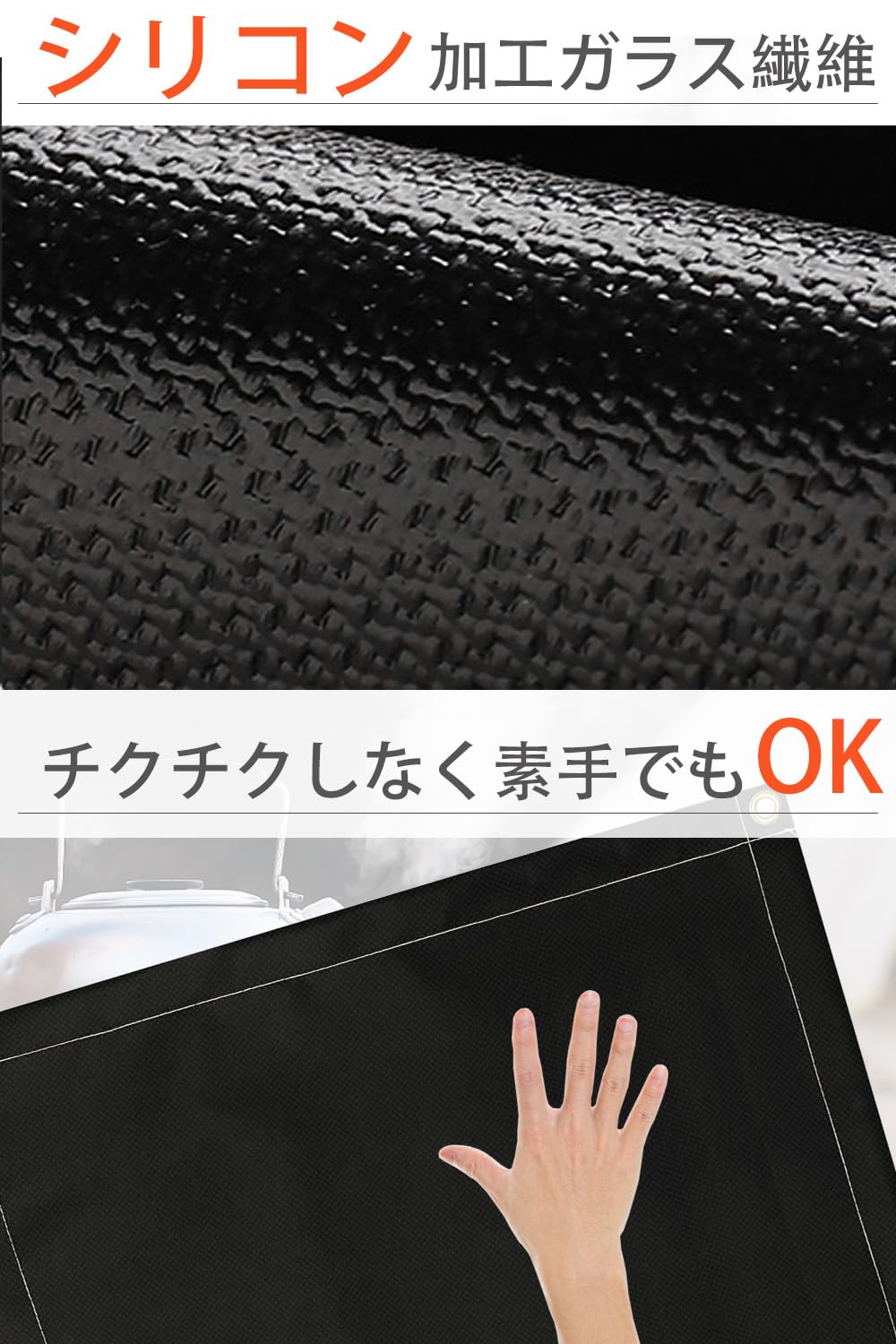 hiino kano 焚き火シート 防火シート チクチクしない スパッタシート 第二世代 撥水機能付き 収納袋付き ガラス繊維 瞬間耐火温度1500度 繰り返し利用可能 芝生保護