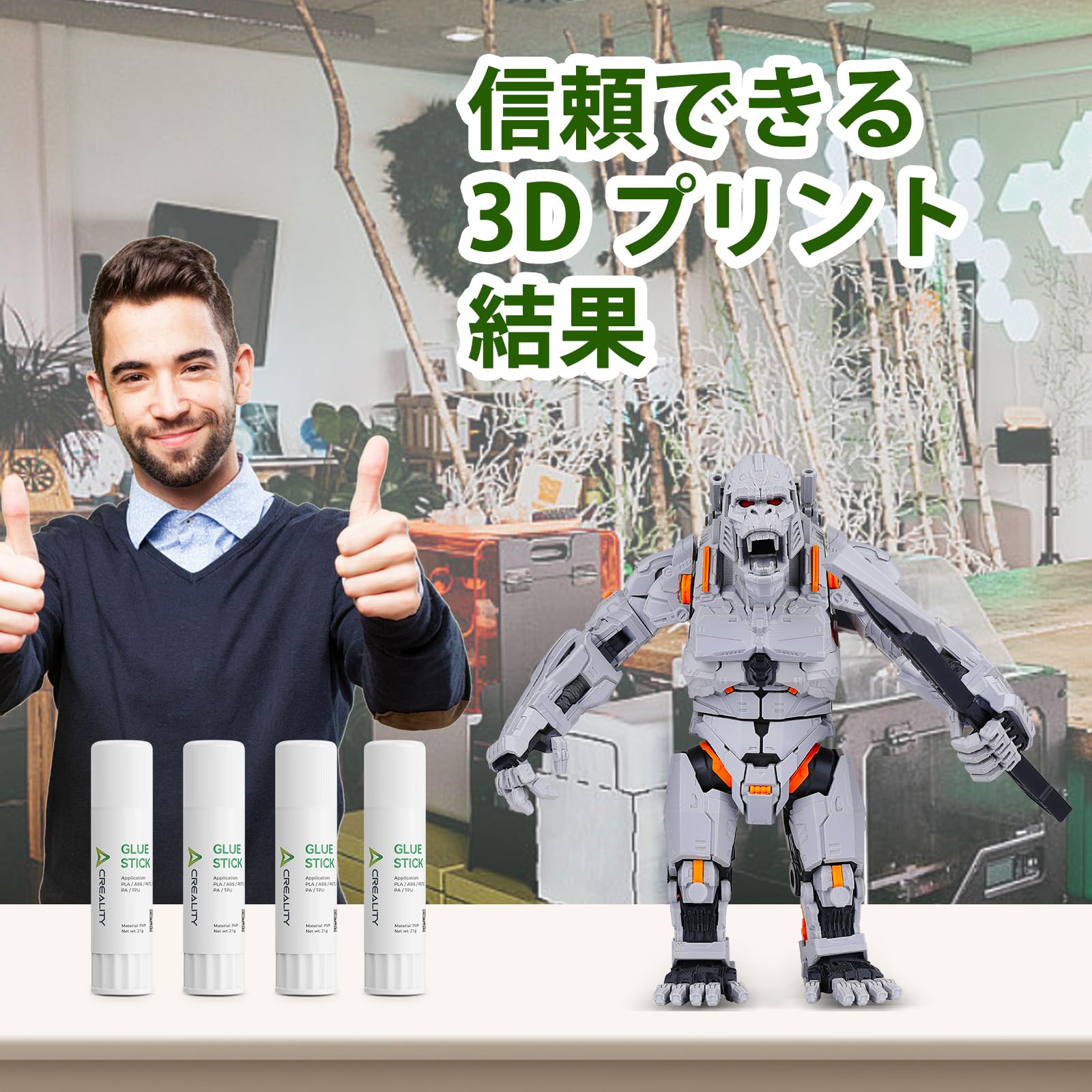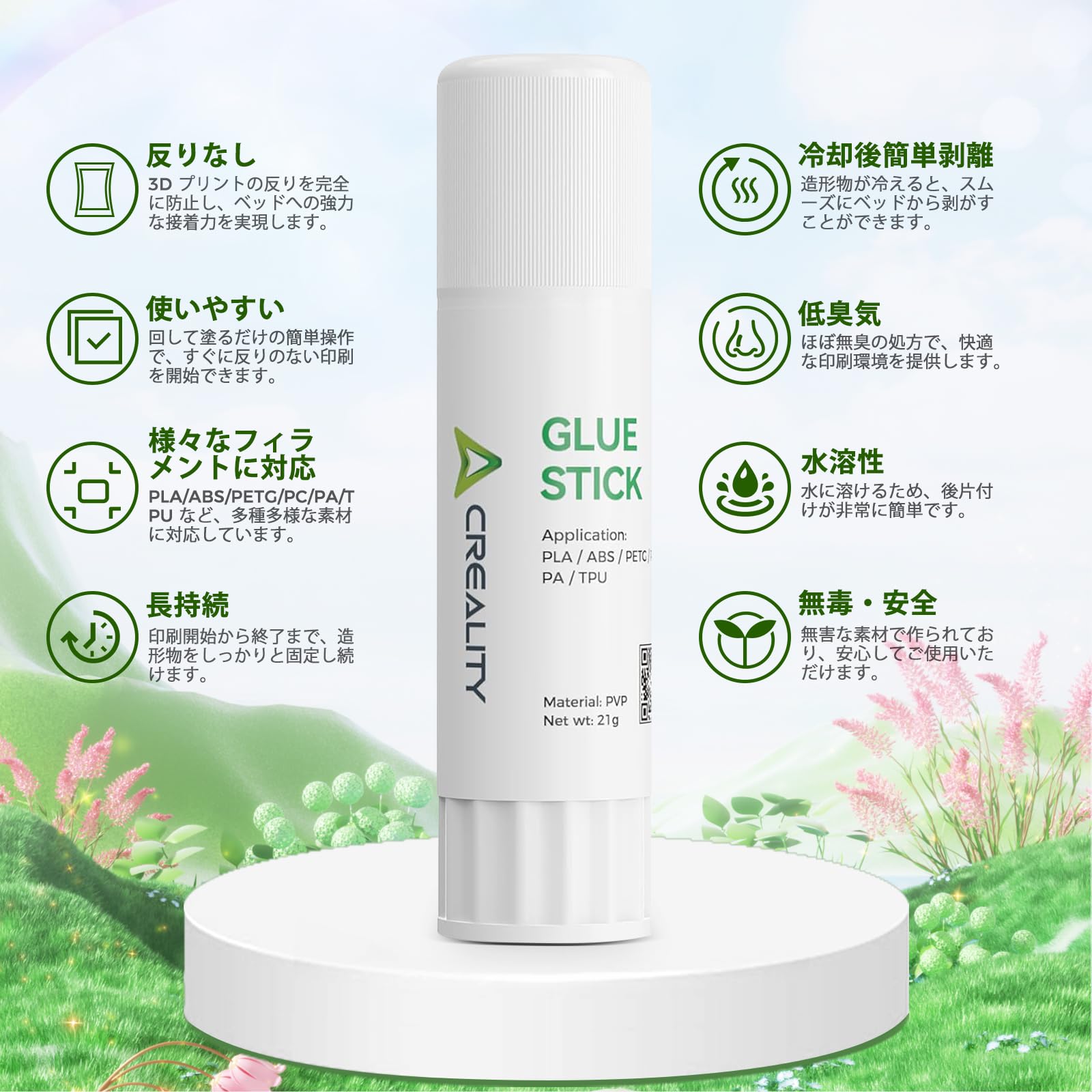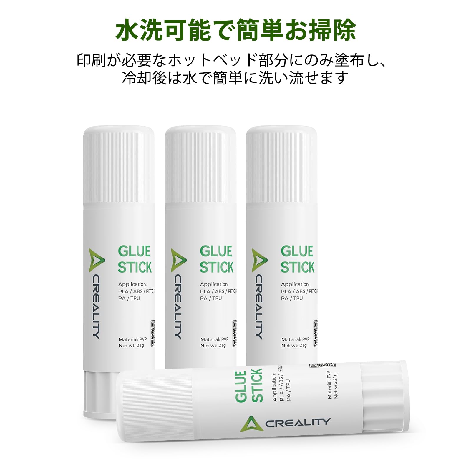 Creality 3D プリンター グルースティック 4 本セット 第一層密着強化 反り防止 ホットベッド用 PVP 製 3D プリント用接着スティック PLA/ABS/PETG/PC/PA/TPU 対応 1 本/ 21g 3Dプリンタアクセサリ