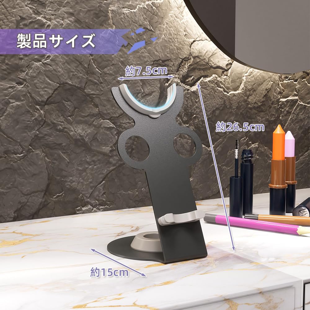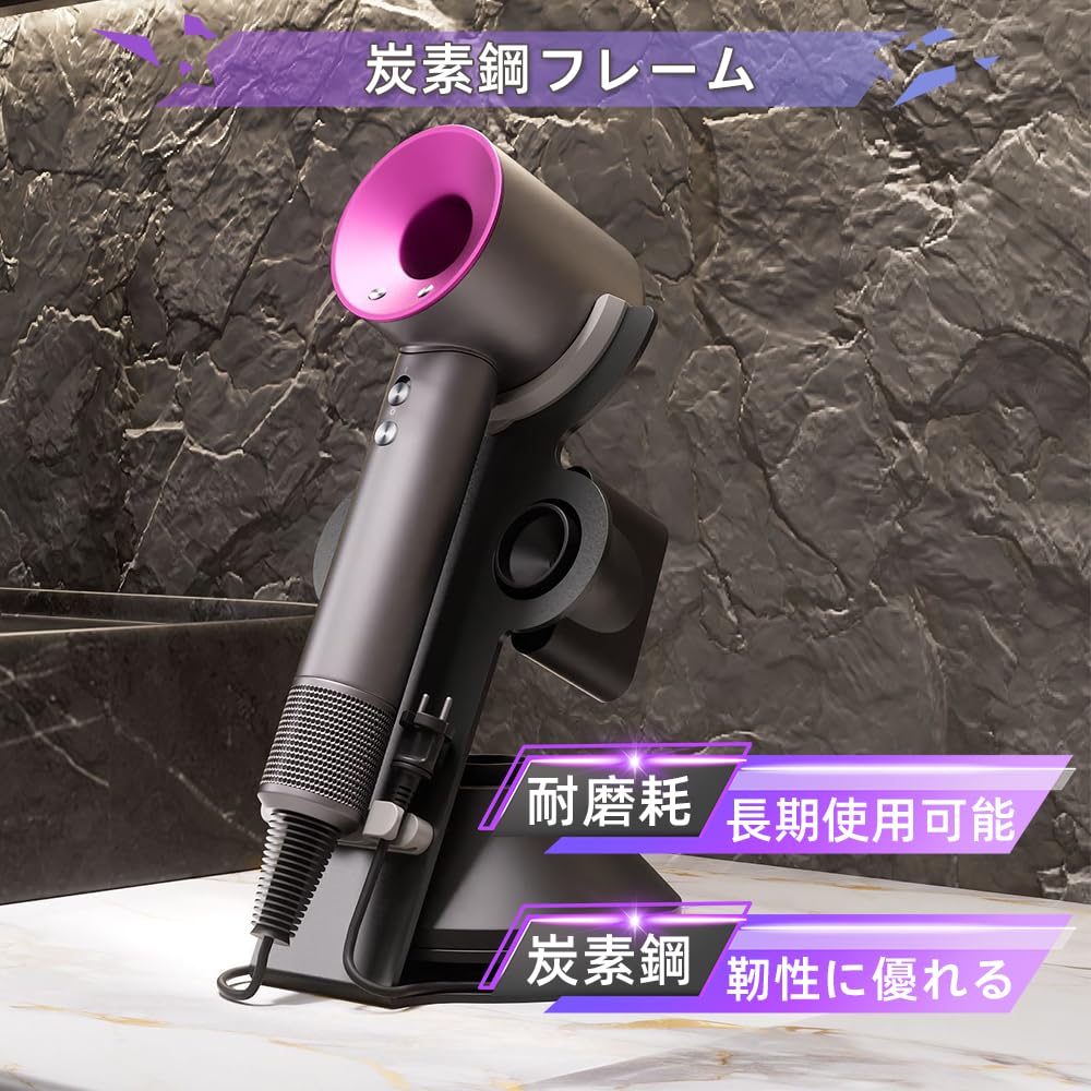 洗面台の散らかりを根本的に解決する多機種対応ドライヤースタンドです!頑丈な炭素鋼フレームと滑り止めシリコンパッドにより、水回りでも安定した保持力を発揮。3 連アタッチメントホルダーとコードクリップで、本体・付属品・コードの全てを一箇所に整理,スッキリとした空間を作り上げます。組み立て不要のシンプル設計で開封後すぐに使用可能,洗練されたデザインはあらゆるインテリアに調和。毎日のスタイリング時間を効率化し、生活の快適さを向上させる必須アイテムです。※本品はスタンドのみで、ドライヤー本体及びアタッチメントは含まれません。