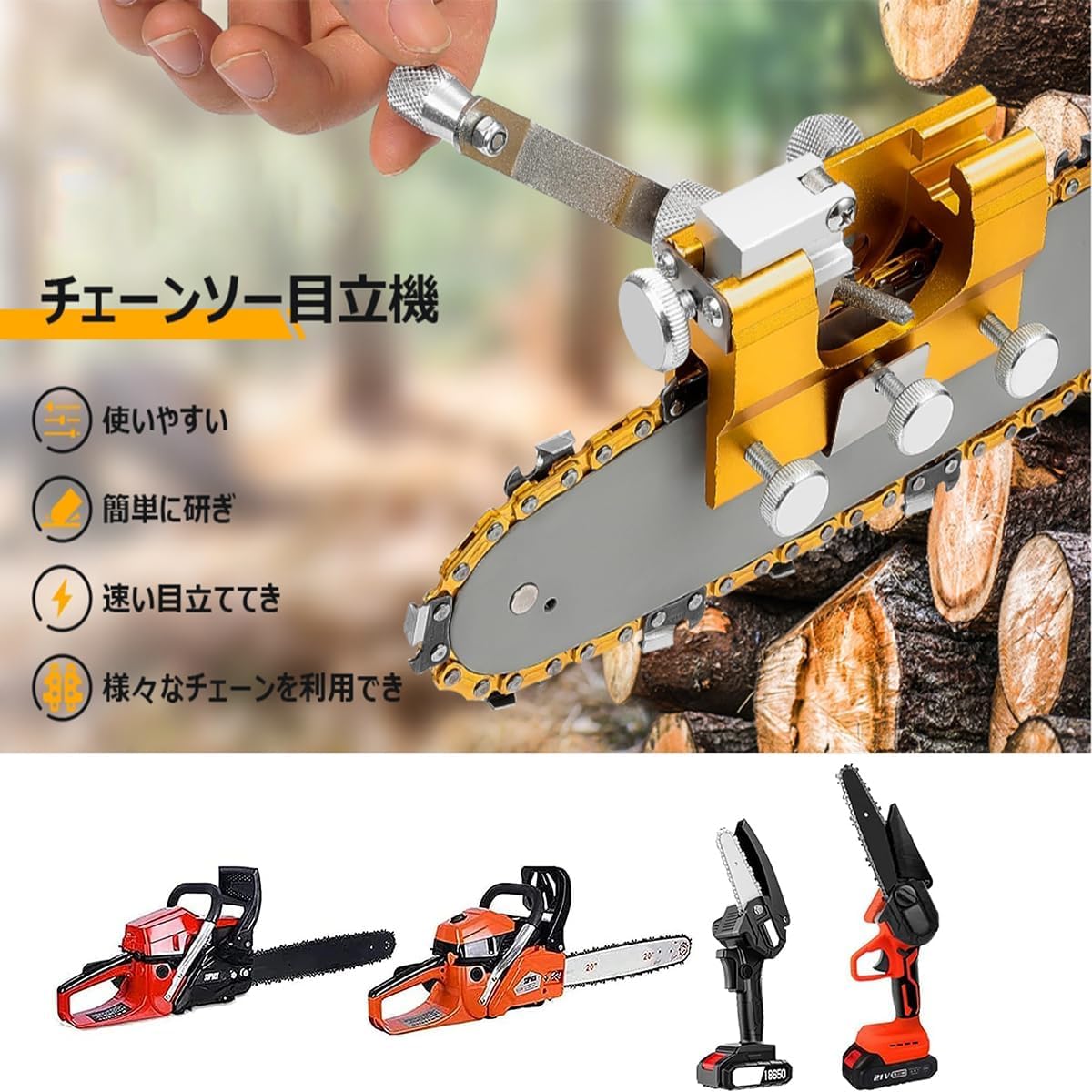 チェーンソー 目立て機 ポータブルチェーンソー 鋸の目立て 刃研ぎ キット ハンドチェーングラインダー 防護 チェーンソー目立て道具 軽量で持ち運びが簡単 すべてのタイプのチェーンソーに適しています 手動チェーンシャープナー 適しています 木工用 家庭 園芸
