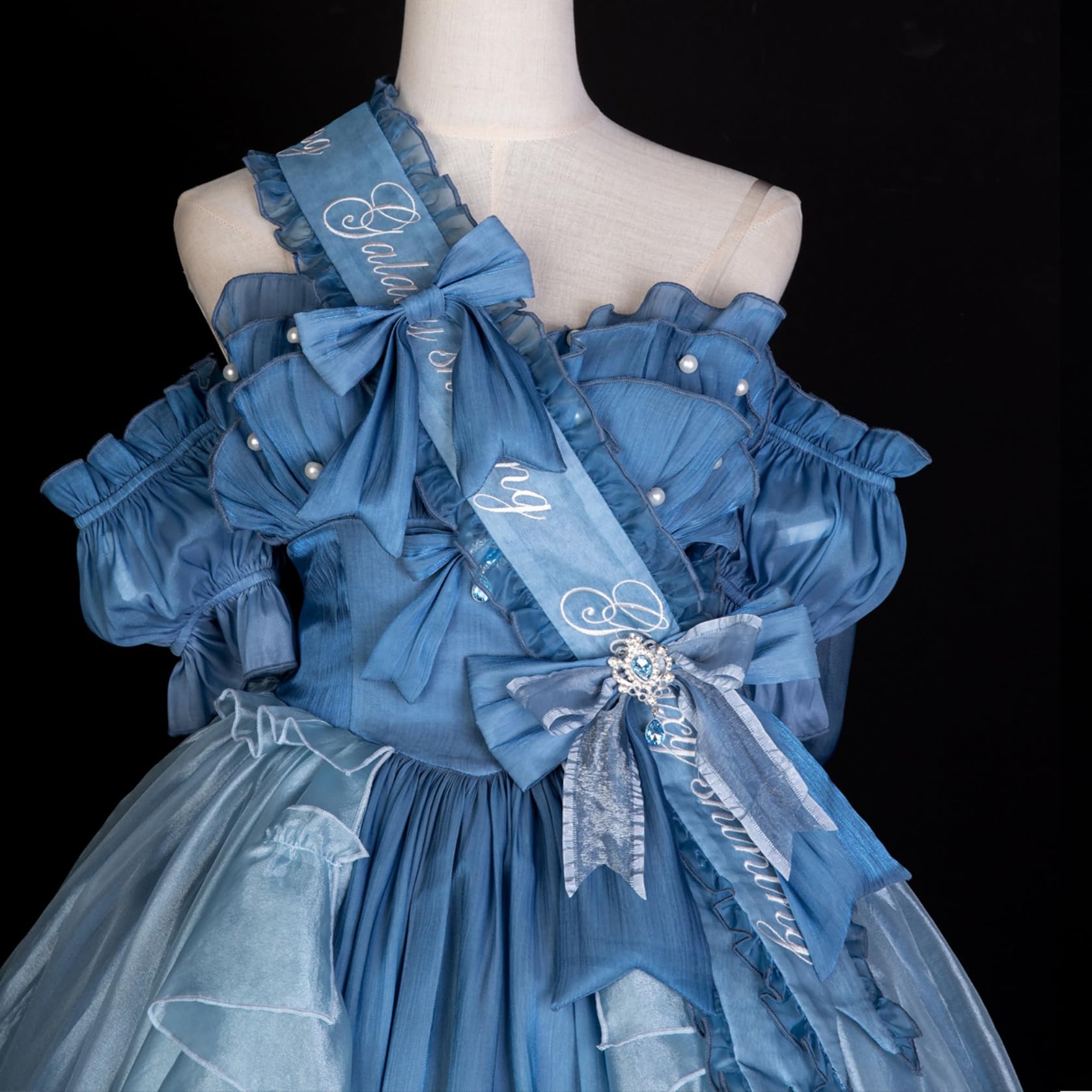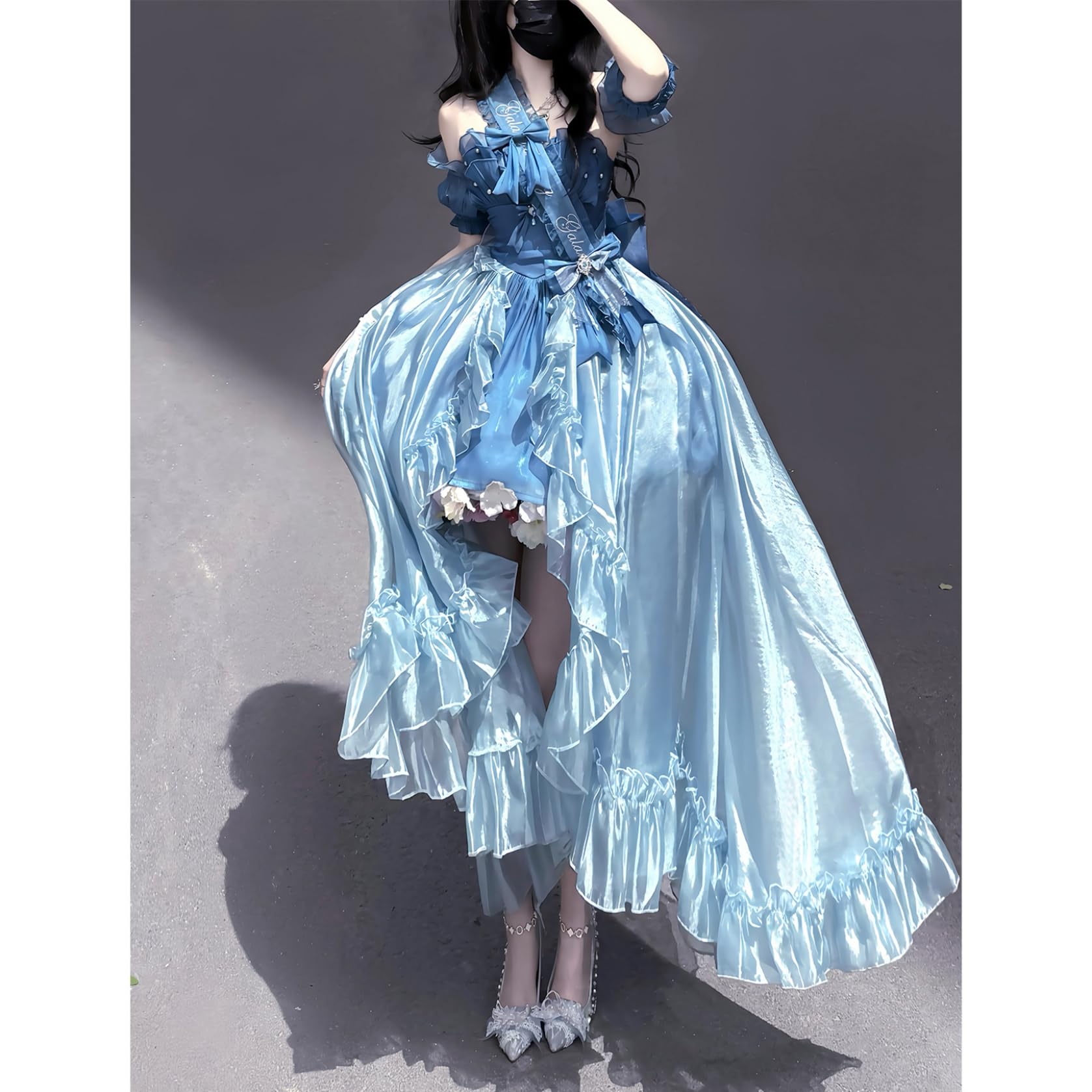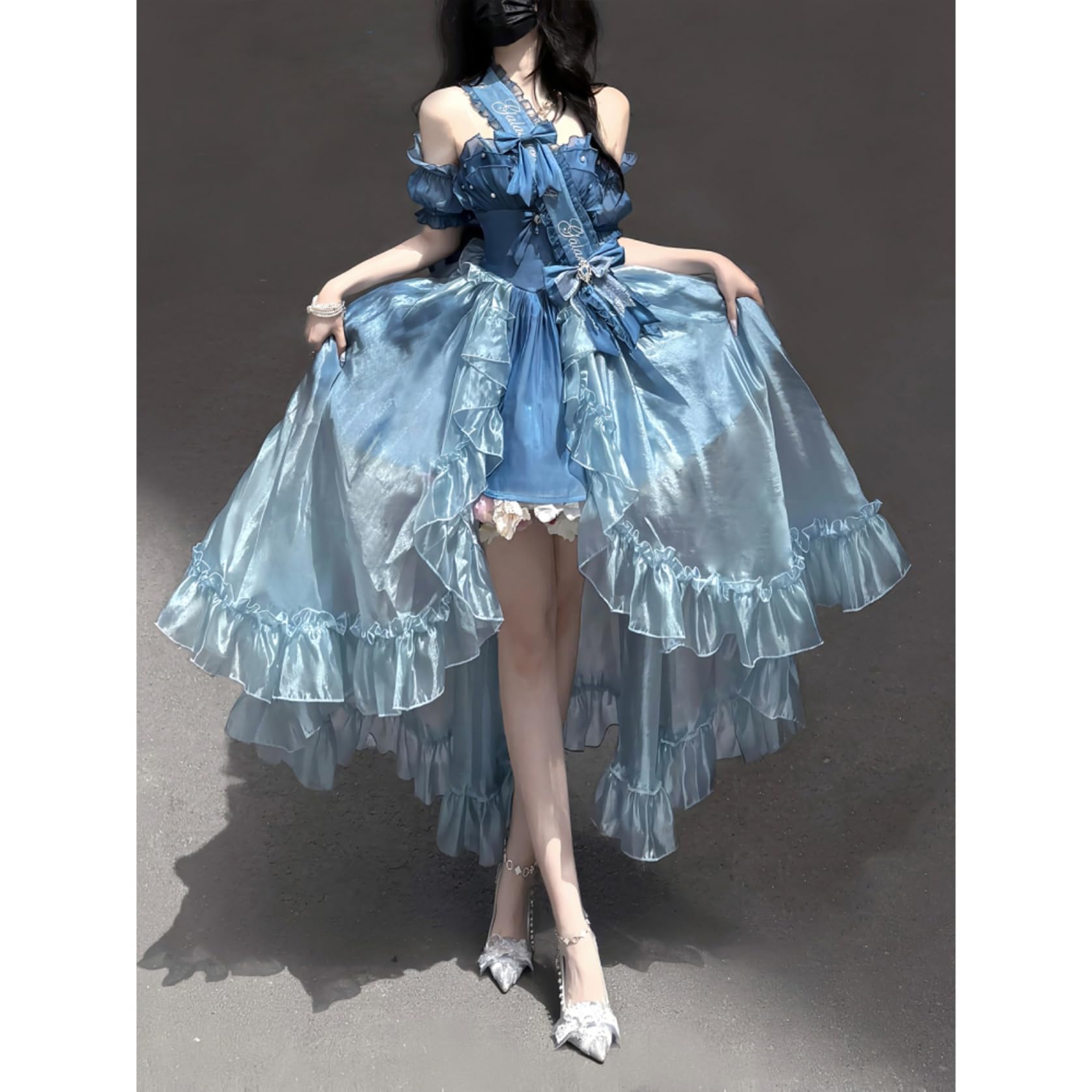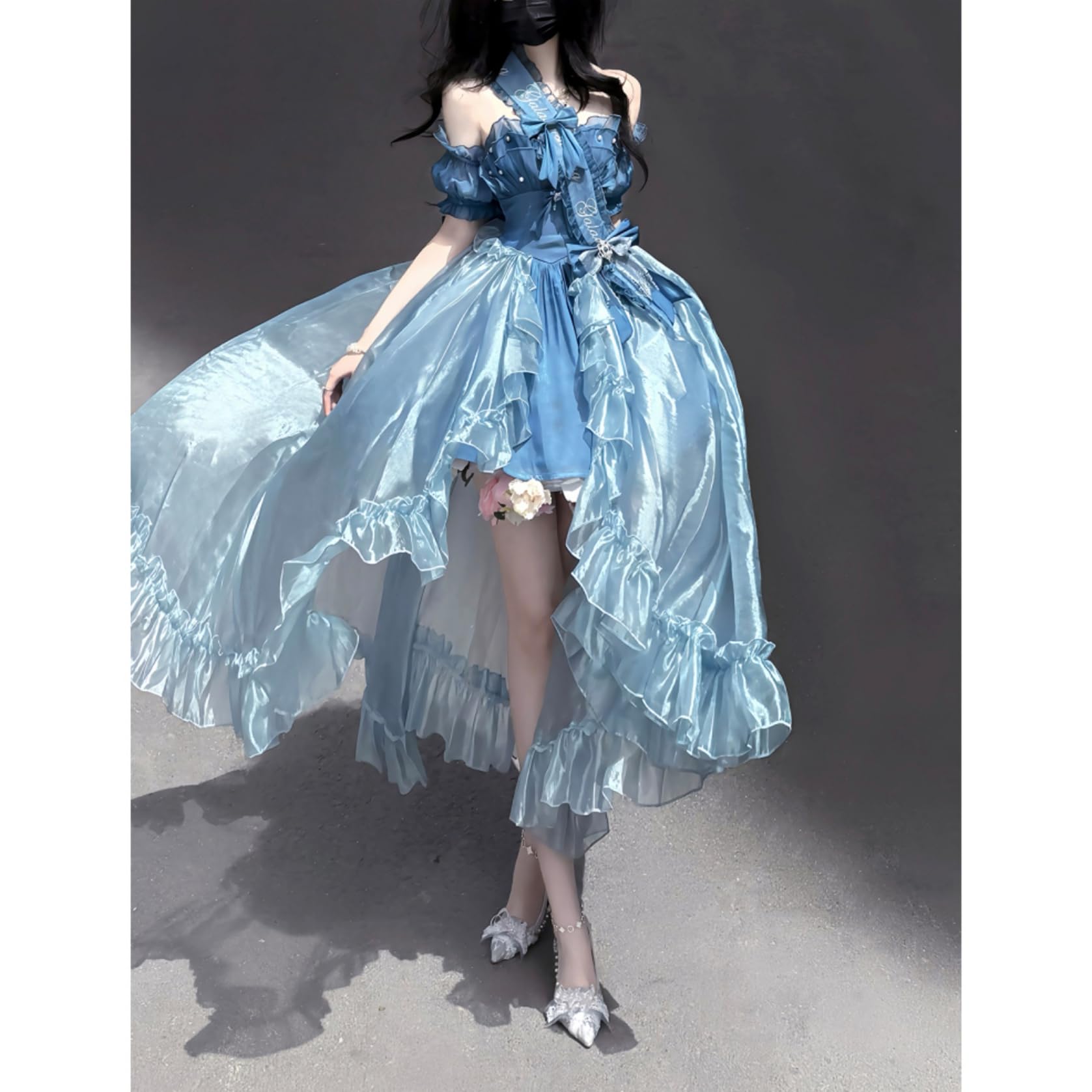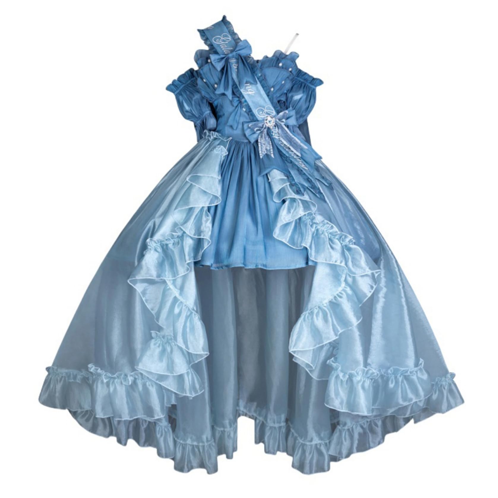 [ボズとガルヤ] ロリータドレス 長い裾 ワンピース 花嫁 スウィートウェディングドレス 宮殿風 リポン キラキラ 華ロリ 透け感 プリンセス 仮面舞踏会 花嫁調Lolita 茶話会 女子会 卒業式 バースデー
