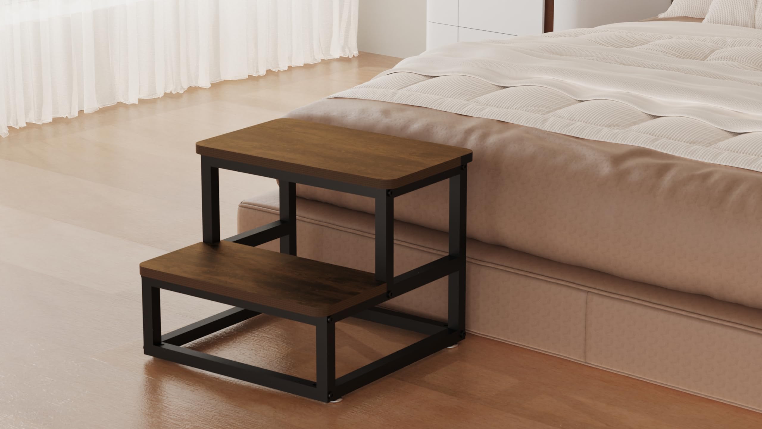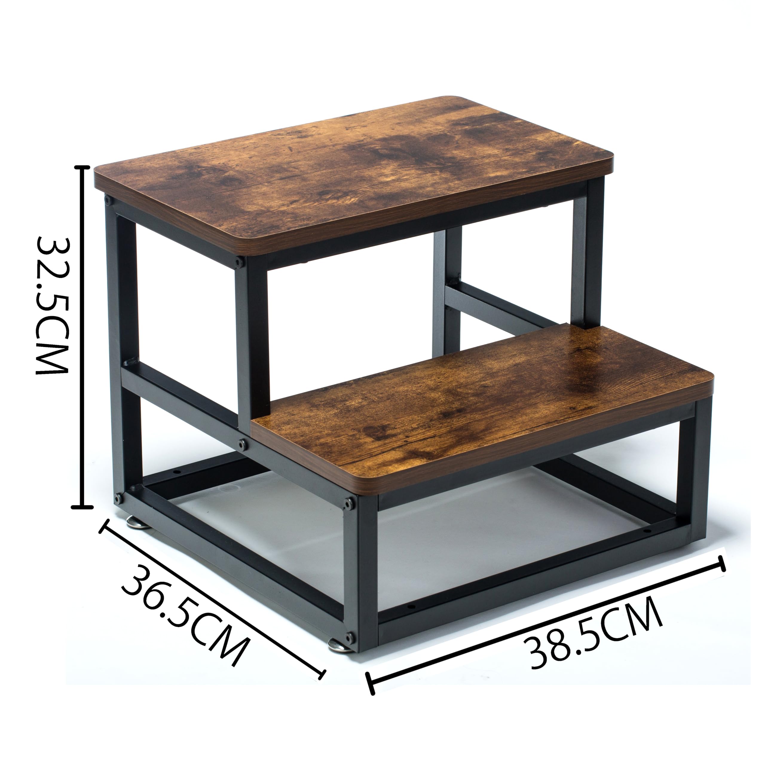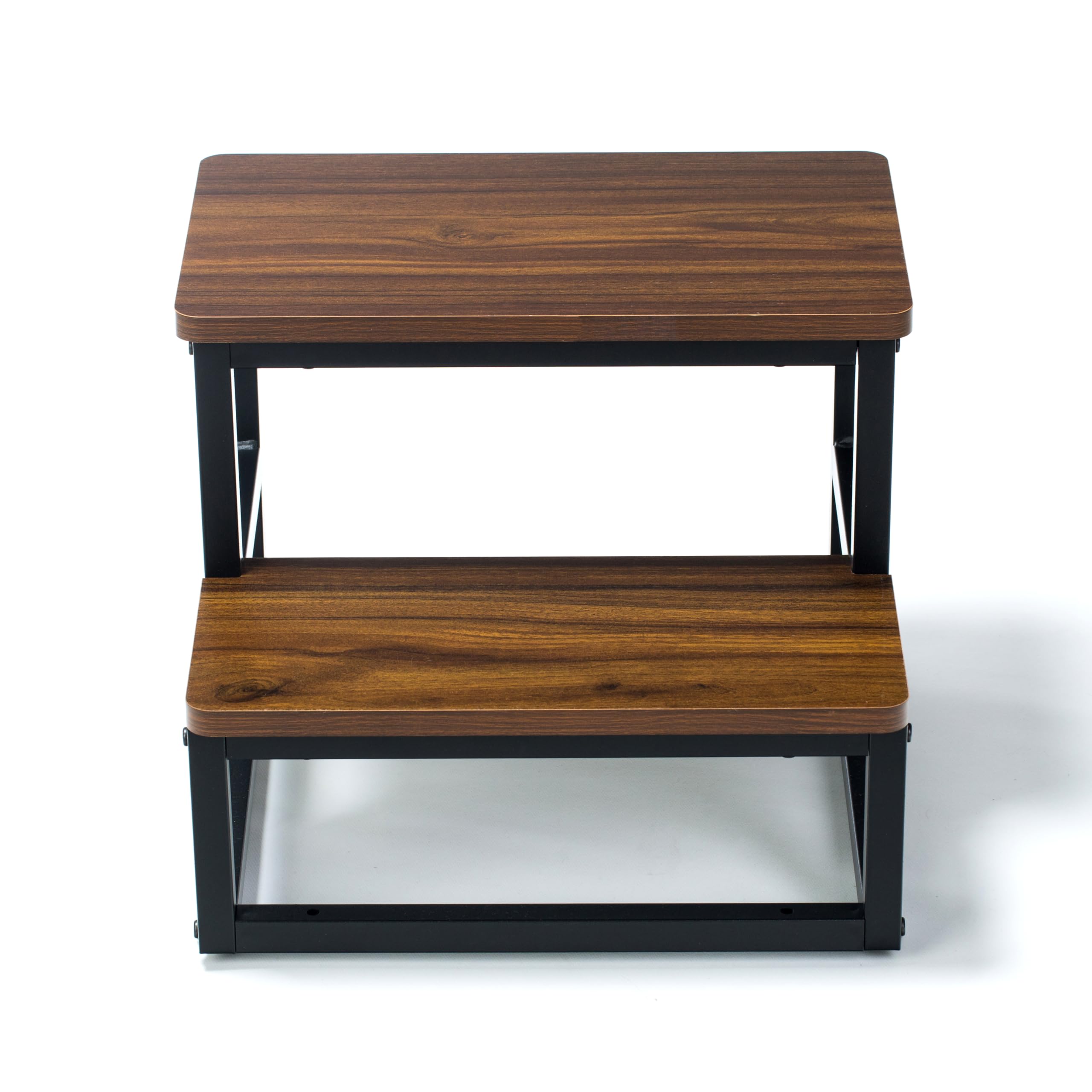ZLJ 2段はしご、踏み台プラットフォーム、屋内踏み台、ベッドサイドスツール、子供に適し、大人に適し、寝室、キッチン、バスルームに適し、耐荷重200KG、サイズ長さ38.50cm、幅36.50cm、高さ32.50cm(クルミ)