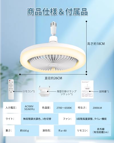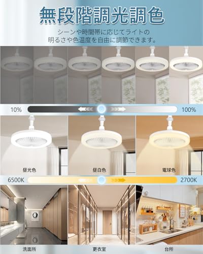 Lavifer シーリングファンライト E26モデル ファン付きLEDミニライ 2000Lm 90W相当 リモコン付き 調光調色 風量3段階 タイマー設定 2H/4H 取り付け簡単 工事不要 洗面所 脱衣所 天井照明 (E26ソケット)