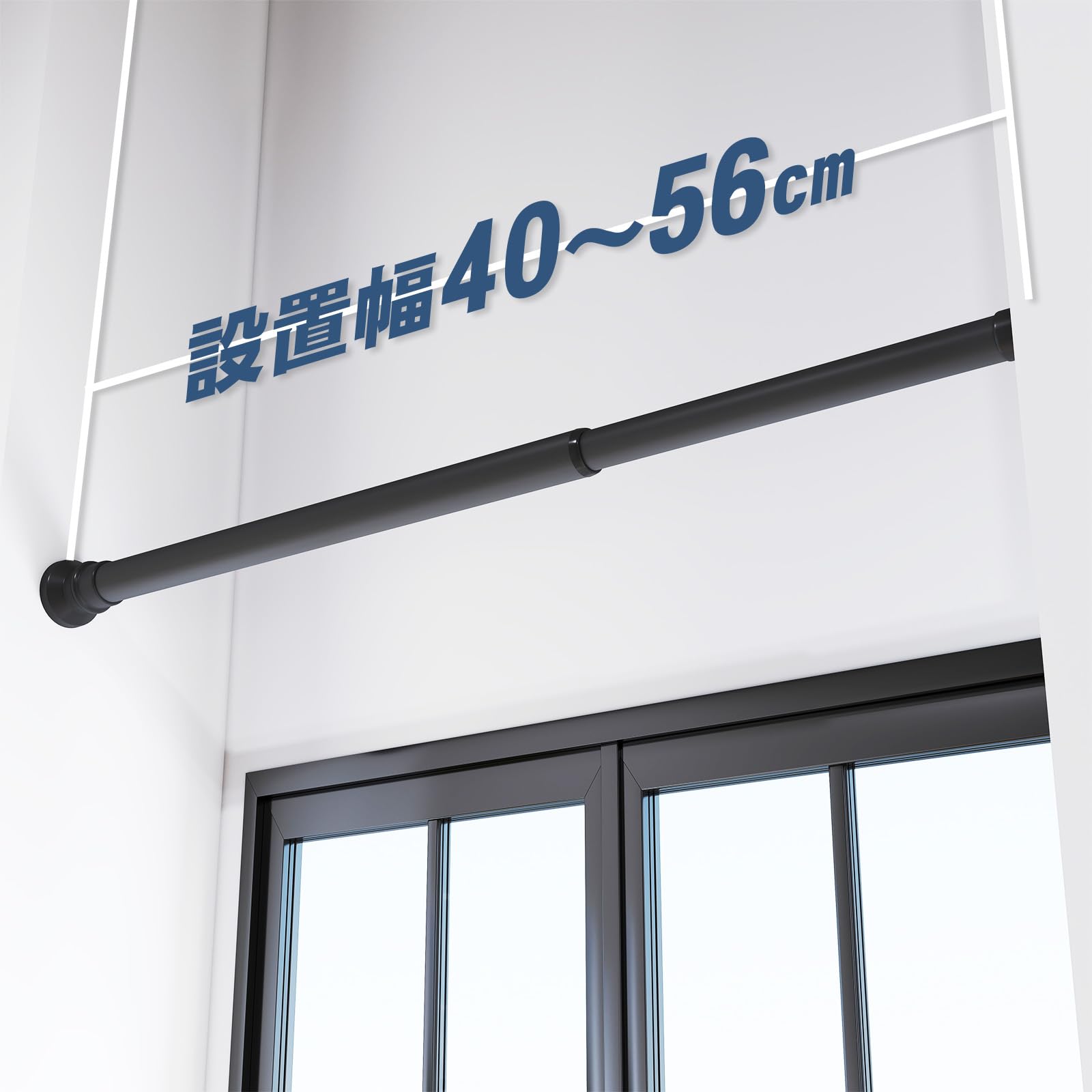 BAOYOUNI 突っ張り棒 つっぱりポール、幅40~56cm、耐荷重35kg、パイプ直径2.5cm、スチール製、カーテンポール (ブラック)