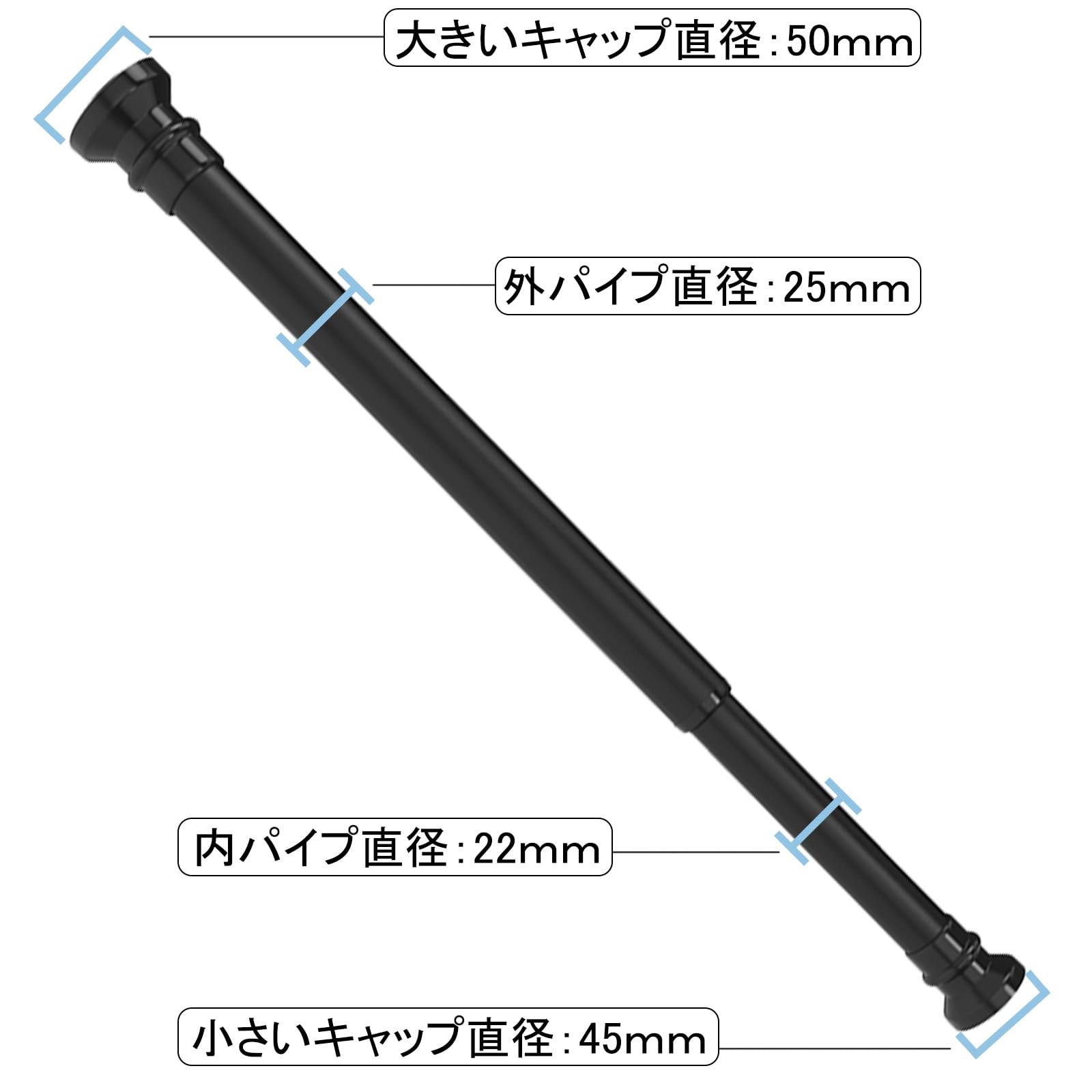强力 突っ張り棒 2m以上 ブラック 2本セット 直径 32.5mm 耐荷重25~80kg ツッパリ棒 2.5m 幅135~250cm カーテンレール 突っ張り棒 2m以上 (135~250cm 2本セット, ブラック)