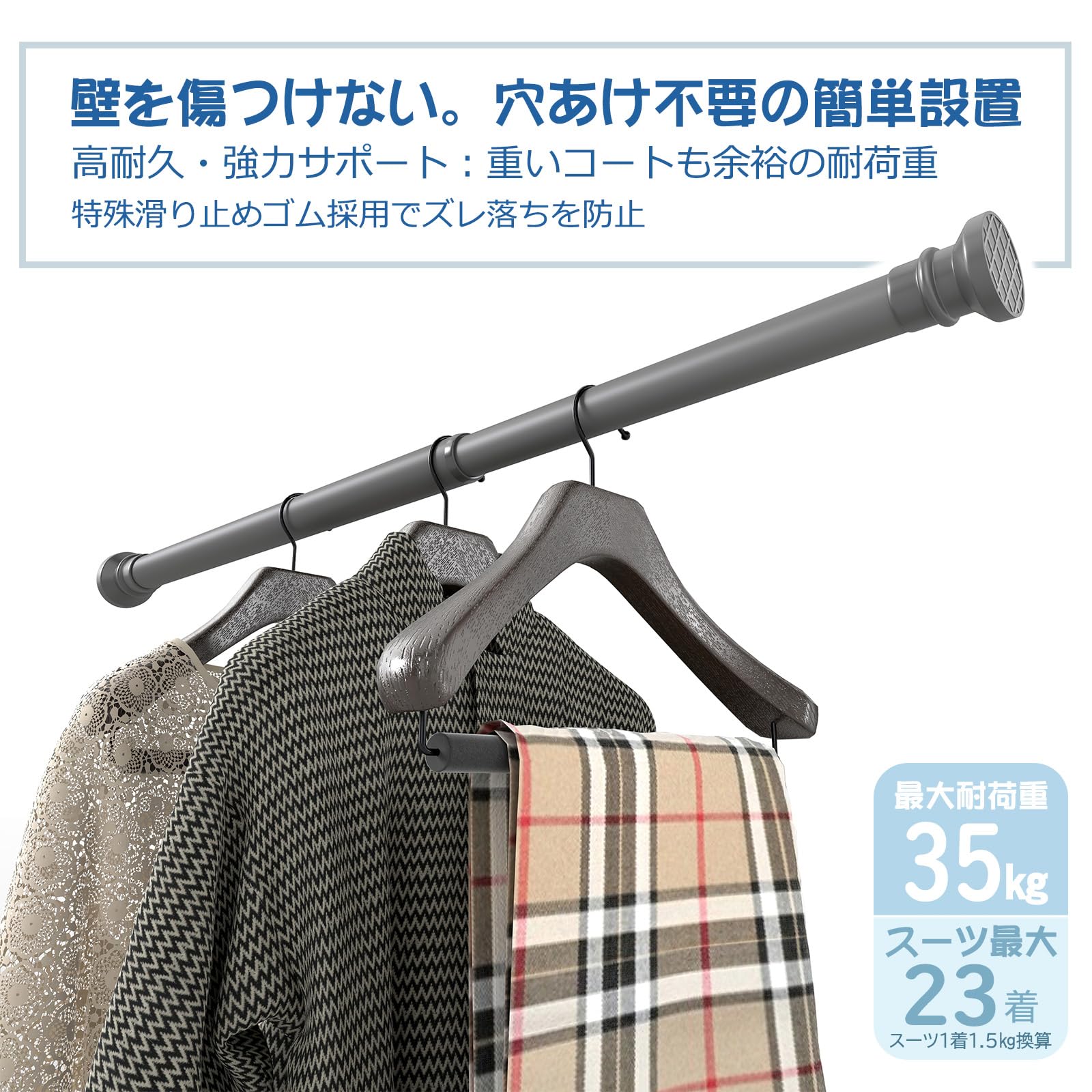 YFFSFDC 突っ張り棒 穴あけ不要 超強力 耐荷重50kg 防錆設計 304ステンレス |幅47-260cm対応 落下防止 幅広調整可能 室内物干し・カーテン・収納に最適 (50cm-85cm)