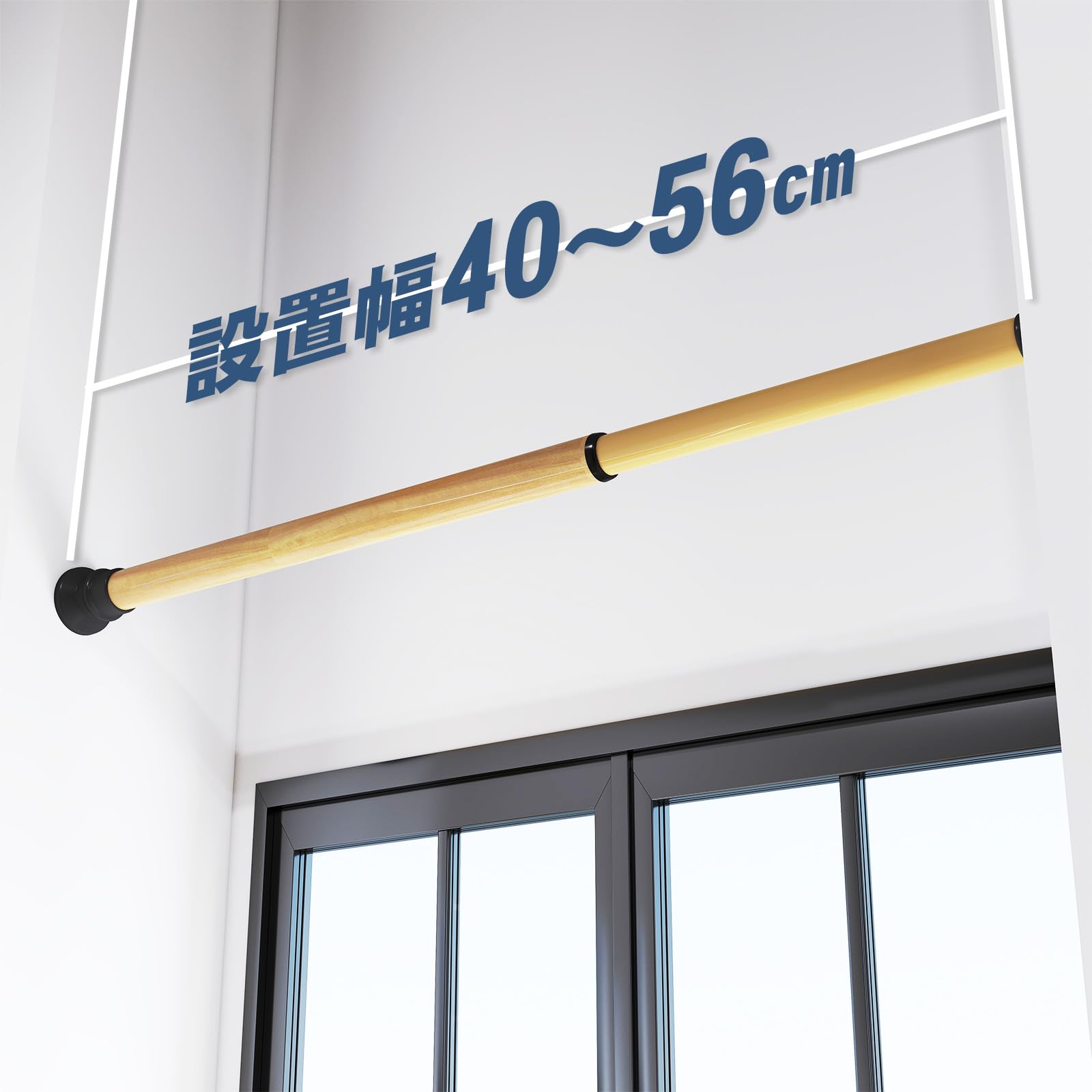 BAOYOUNI 突っ張り棒 つっぱりポール、幅40~56cm、耐荷重35kg、パイプ直径2.5cm、スチール製、カーテンポール (木目調)