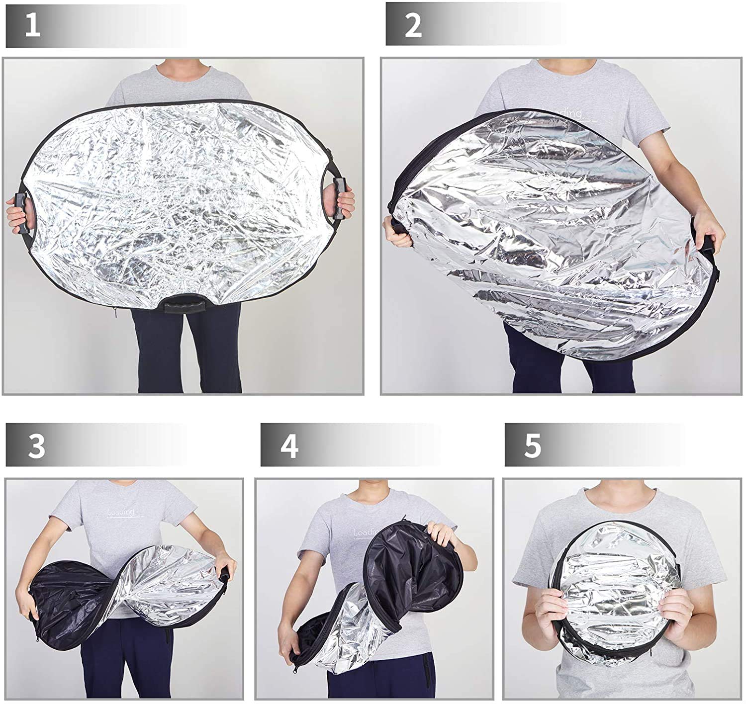 Selens 5-IN-1撮影用 楕円レフ板 100x150cm スポンジハンドル付き スタジオレフ板 折りたたみ可能 (1枚で5色対応-金/銀/白/黒/半透明)