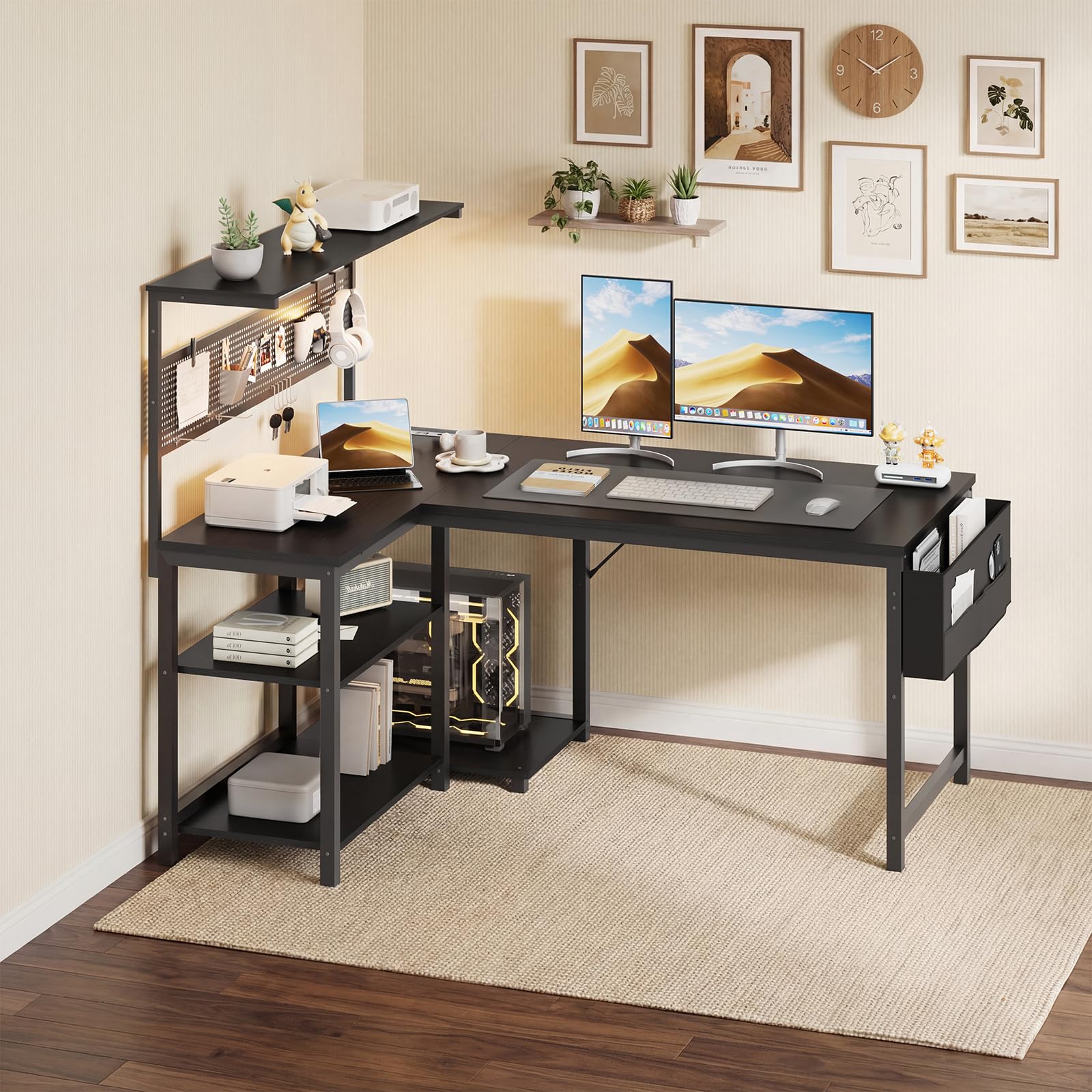 Tribesigns l字デスク パソコンデスク 引き出し付き 幅135cm ゲーミングデスク 机 pcデスク コーナー オフィス 事務用デスク 左右組み替え可能