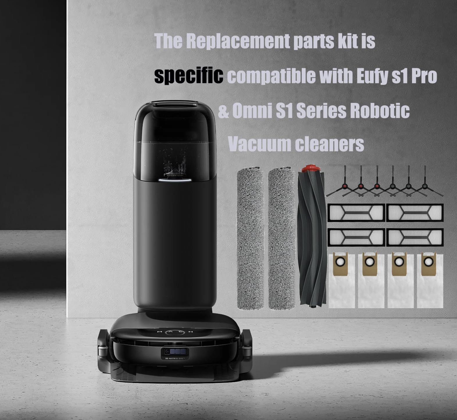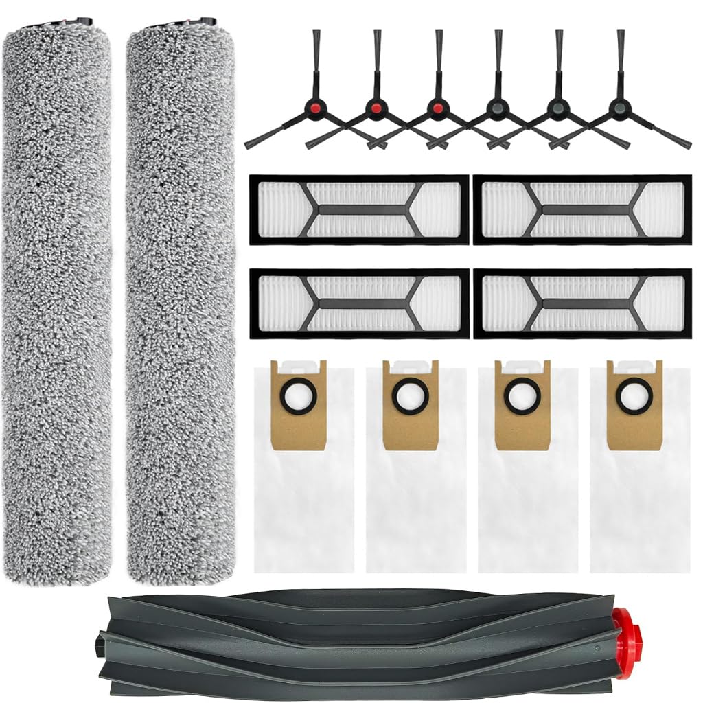 Eufy Omni S1 Pro ロボット掃除機、交換部品メインブラシX1、サイドブラシX6、洗えるフィルターX4、ダストバッグX4、ローリングモップX3 17個入りパック用アクセサリー。