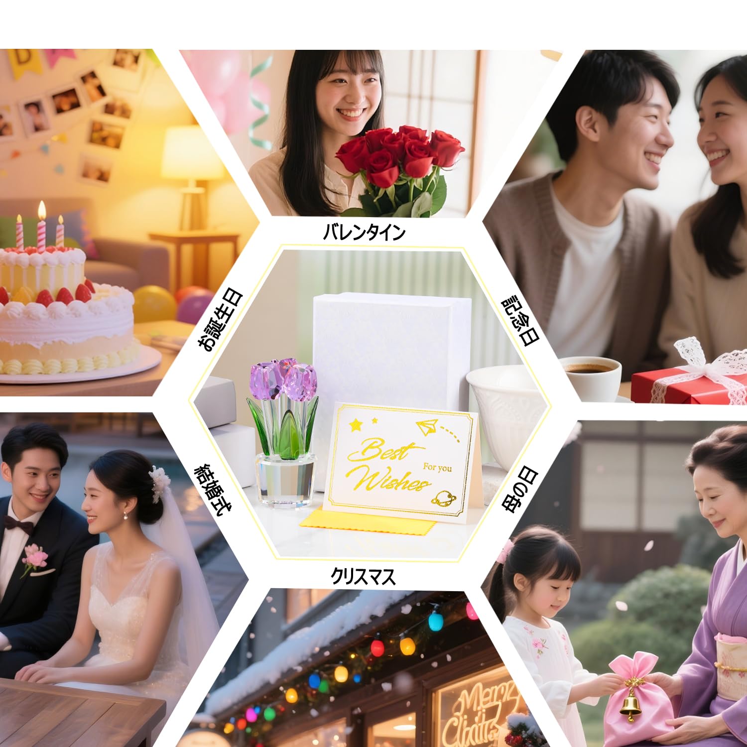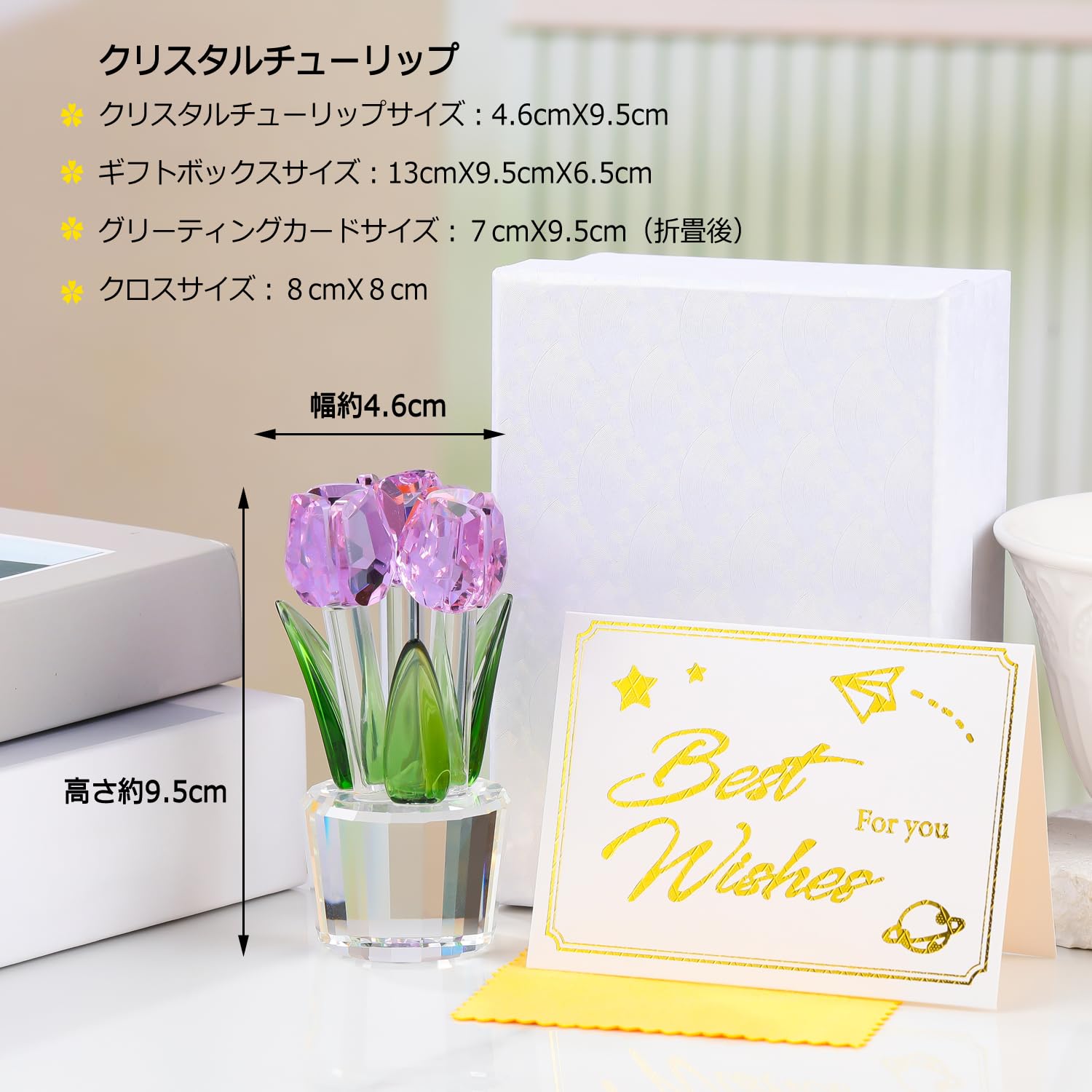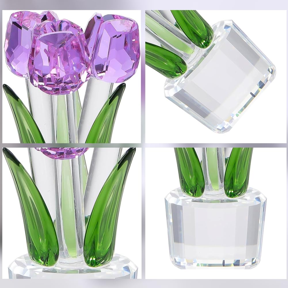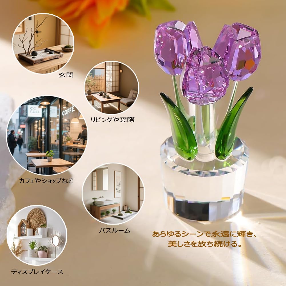 Pleadeliy K9クリスタルチューリップフラワー 枯れない花 結婚祝い 記念日 母の日 送別会 卒業祝い クリスマス 退職祝い ホワイトデー 女性への贈り物 ギフトボックス クロス カード付き