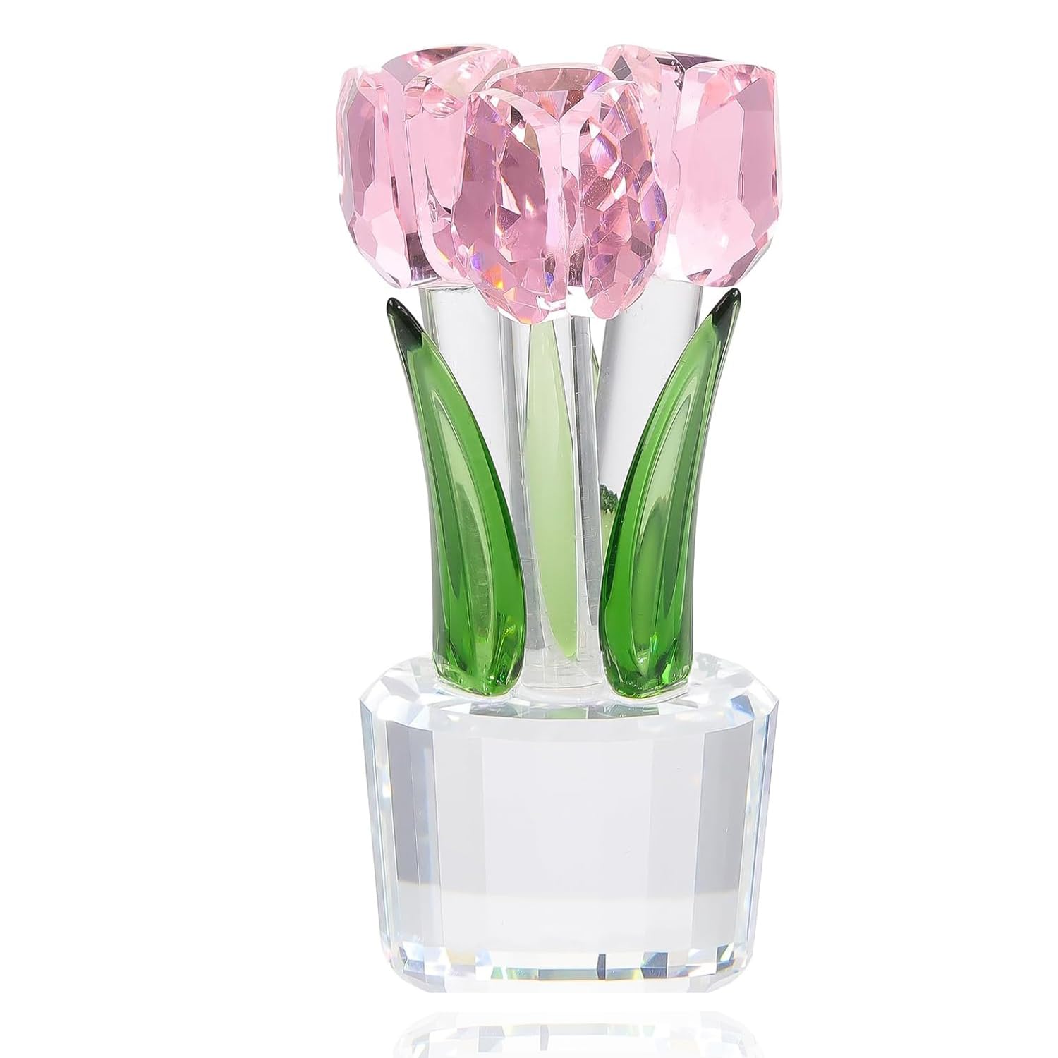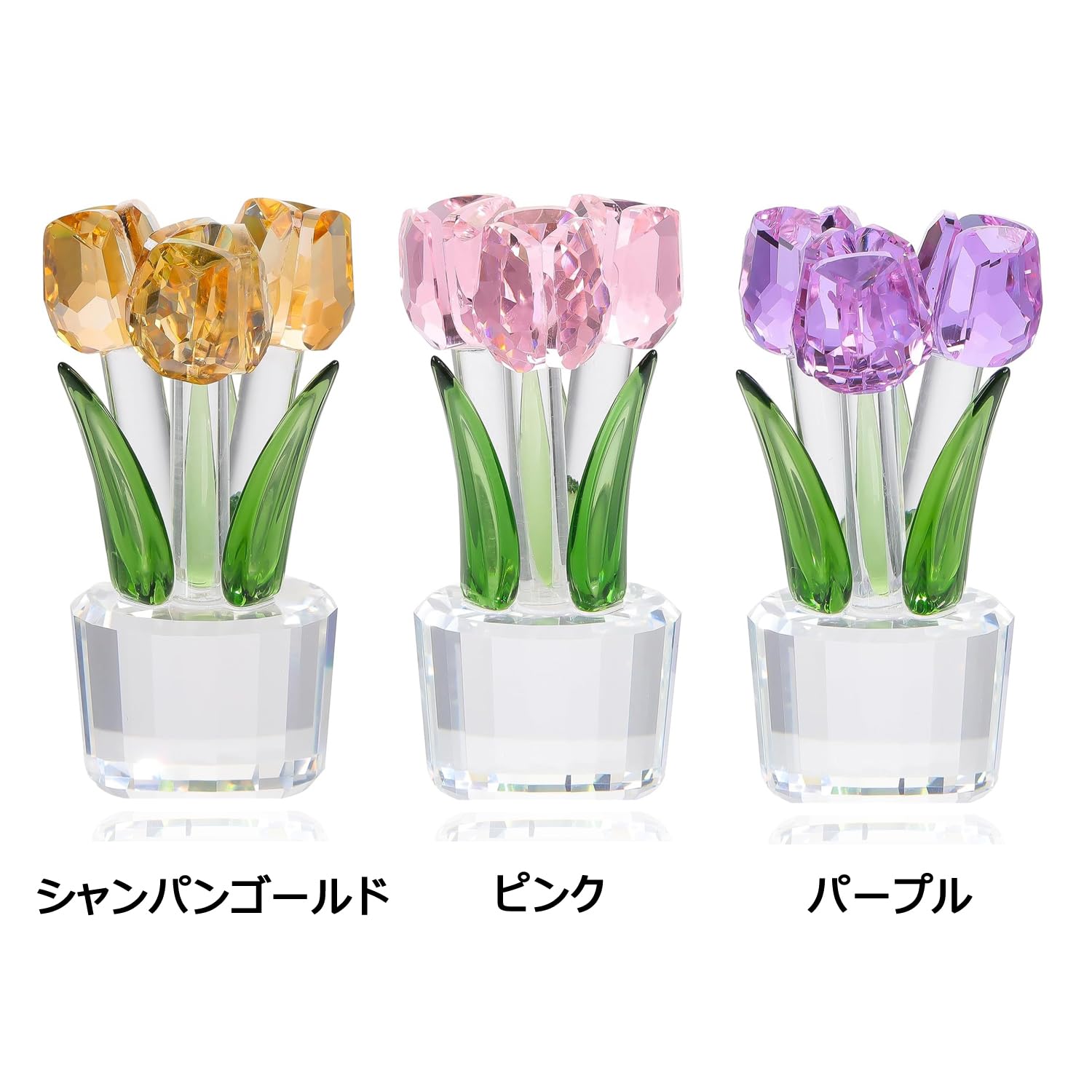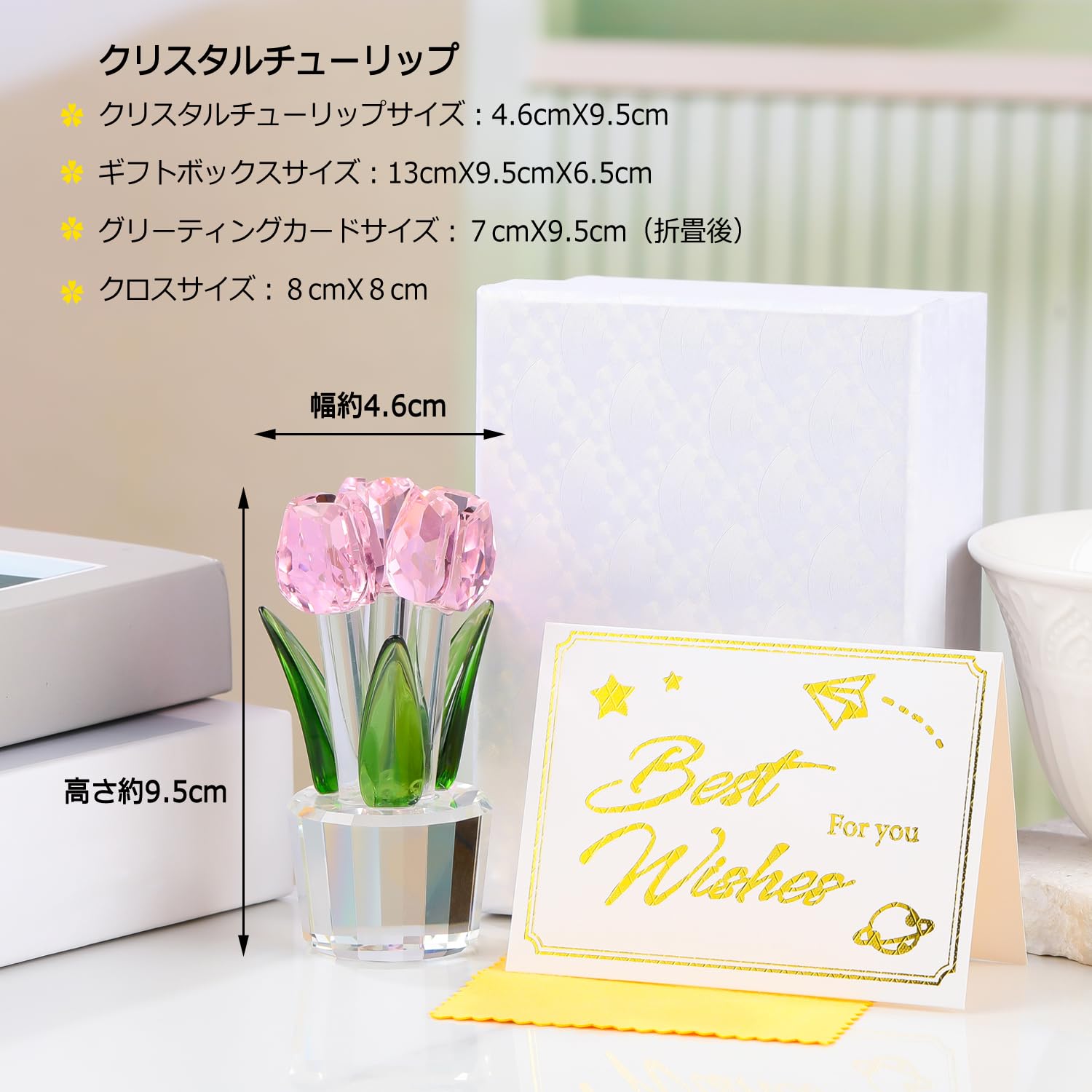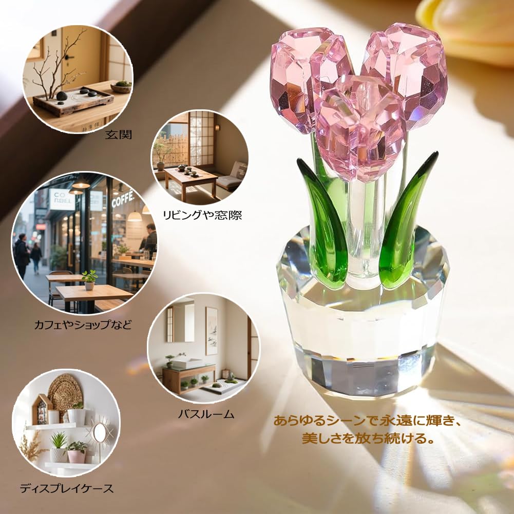Pleadeliy K9クリスタルチューリップフラワー 枯れない花 結婚祝い 記念日 母の日 送別会 卒業祝い クリスマス 退職祝い ホワイトデー 女性への贈り物 ギフトボックス クロス カード付き